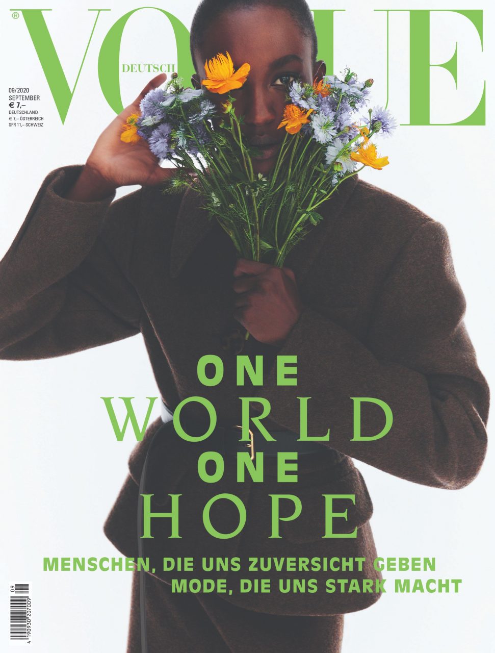 2020 年,全世界的《Vogues》聯手在 9 月號詮釋一份普世主題。此特刊聚焦於希望的概念,及其於世界各地不同面向之詮釋,並讚頌全球致力造就改變的聲音。這次的另一焦則是新生代後起之秀,所有 26 版《Vogue》都找來時尚、電影、音樂及倡議界一些最具影響力的角色,請他們分享對地球未來之願景。