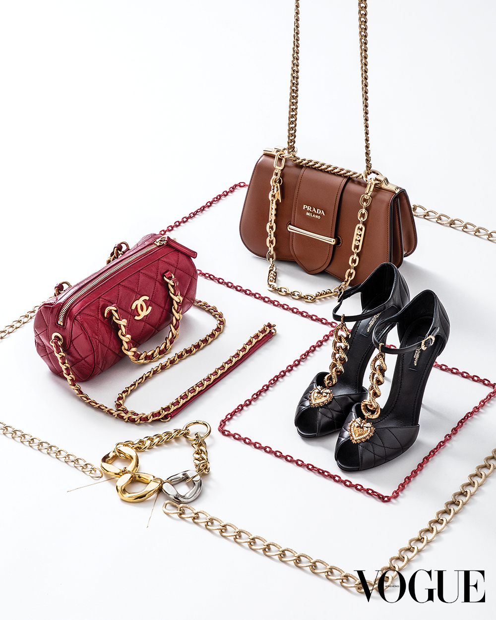 1. Sidonie Leather Shoulder Bag, $21,900, Prada; Chain Necklace (chained to bag), $3,650, Prada