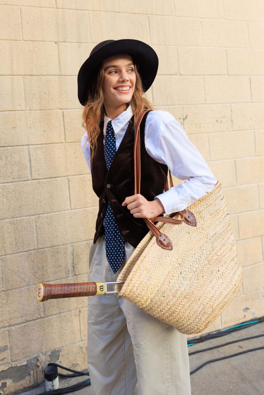 隨着 Diane Keaton 的離世,影壇又失去一位傳奇女星。模特兒 Betsy Gaghan 以一身 Ralph Lauren 造型,重現這位傳奇 1977 年時,在經典愛情電影《Annie Hall》中的標誌性打扮。當音響流淌出 Diane Keaton 親聲演唱的 <Seems Like Old Times>,現場頓時瀰漫着懷念與感傷的氛圍。