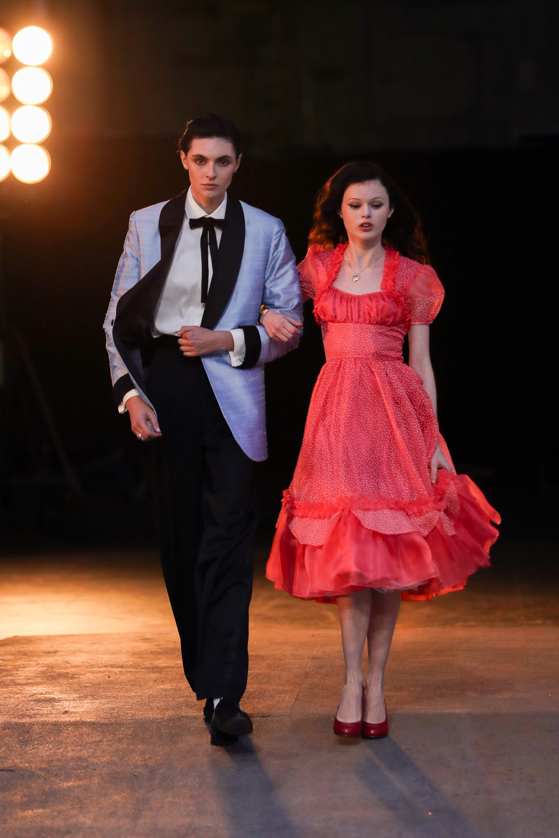隨着煙霧機啟動,第二個章節「The Renegades」拉開序幕:Gabbriette 身披 Schiaparelli 登場,Kodi Smit-McPhee 化身瘋帽客,而 Anok Yai 則演繹剪刀手愛德華。其後,《鍍金年代 The Gilded Age》的主演之一 Louisa Jacobson 換上量身訂製的 McQueen 服飾接棒詮釋該角色。當她踏着重步邁向天橋時,Anok Yai 正為 Gabbriette 進行即興髮型修剪。