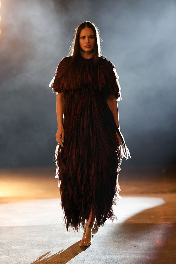 接續一連串身著華麗戲服的模特兒與《柏捷頓家族:名門韻事 Bridgerton》男星 Regé-Jean Page 之後,這位銀幕傳奇身著淡藍色的 Tom Ford 晨袍亮相,引爆全場熱烈歡呼。其身後更見 Adut Akech 與身姿纖雅的 Elizabeth Debicki 相繼登場。