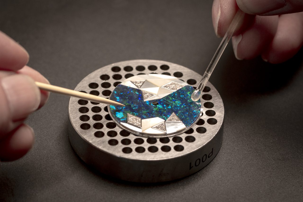 為了成就這三款各限量八枚的傑作,Chopard 研發出密度適合的液體,Caroline 解釋:「我們重塑了 Happy Diamonds 鑽石的流動方式,使用一種新開發的液體,在兩層藍寶石水晶玻璃之間調整鑽石的全新活動節奏。」這項工藝技術的難度在於如何抵銷因在兩層藍寶石水晶玻璃之間注入新型液體而導致的溫差和壓力差異,見證了品牌在糅合製錶技術和珠寶工藝兩者之間的過人能力,無負品牌一直以來結合腕錶和珠寶雙管齊下的努力。