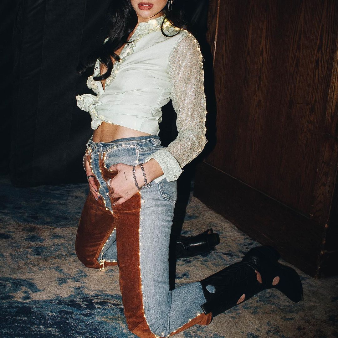 Dua Lipa 是次 MV 由頭到尾的 Ranchcore 造型,無疑將會讓人們在今年重新愛上受西部牛仔競技啟發的設計。 除了頭戴著一頂牛仔帽,又或換上整身 cowgirl 造型,Ranchcore 更像是一種將牛仔打扮,結合日常造型的風格。像超模 Kendall Jenner ,她在日常出行的裝扮以復古上衣配上繫帶褲(lace-up trousers),又或以絲質連身裙配上一對牛仔靴(cowboy boots),這種一剛一柔的配搭,相信便是當下流行的 Ranchcore 風格最佳範例了。
