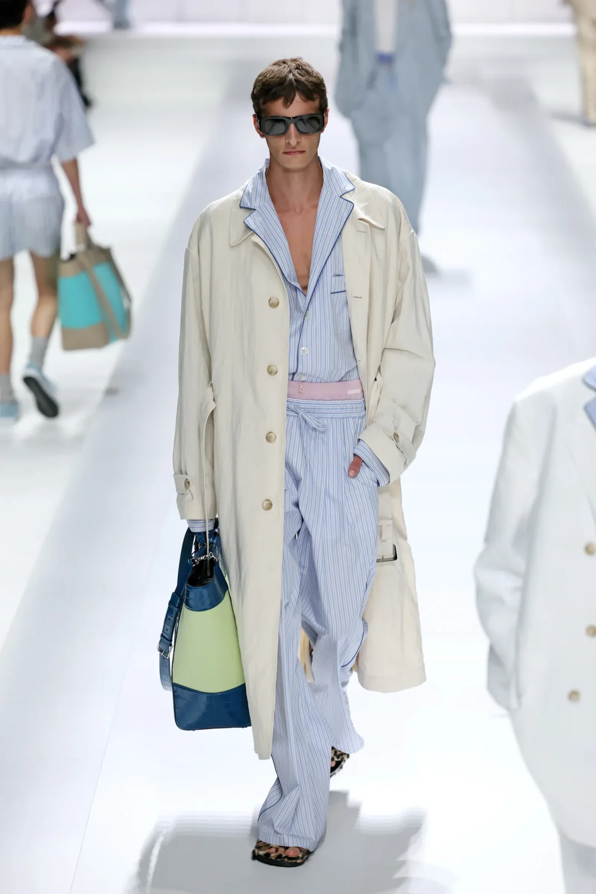在2026年春夏米蘭男裝周的秀場上,睡衣更成為最時髦的單品,無分性別或年齡,人人皆宜,而這只是冰山一角。這股睡衣潮流已迅速蔓延到其他單品,只要經過精心搭配,它就能讓你散發一種精緻的懶散氣息。