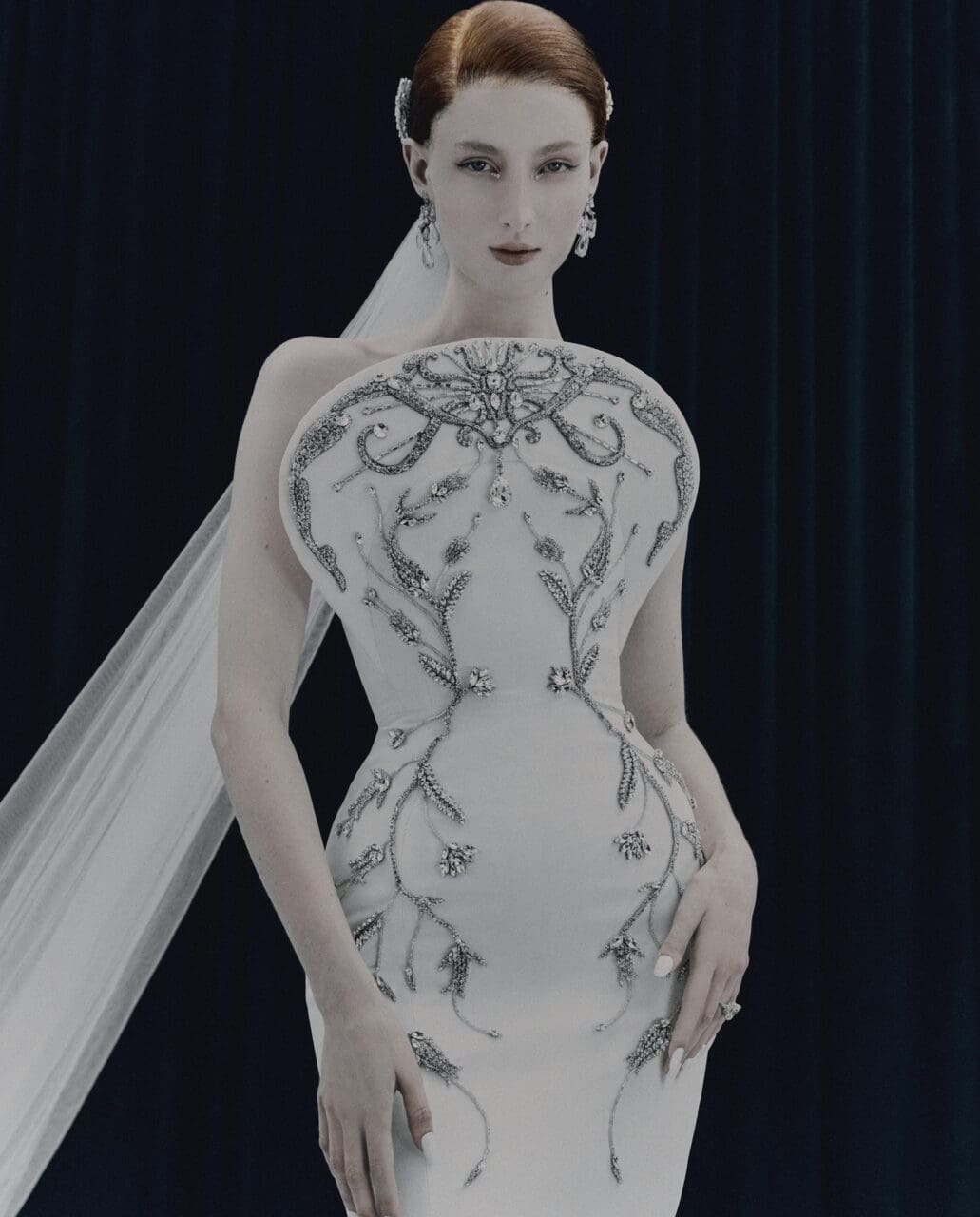 那麼在創作高級訂製設計中,融入這些多元文化影響究竟有何獨特之處?他講述道:「意大利藝術的浪漫與永恆、阿聯酋建築的奢華與創新,以及斯里蘭卡工藝的生動與細緻,這些都是極為豐富的文化元素,深深啟發了我及我的作品。高級訂製的誕生源自法國,其傳統實踐反映了 20 世紀特定的文化背景。通過將多元文化的影響融入遵循傳統高級訂製裁縫卓越的設計中,我希望能將這門藝術發展到當今世界的背景——一個文化不斷交融的創造表達創新身份的國際舞台。希望我的作品能代表這種新的混合演變,同時保持高級訂製所代表的藝術本質。」