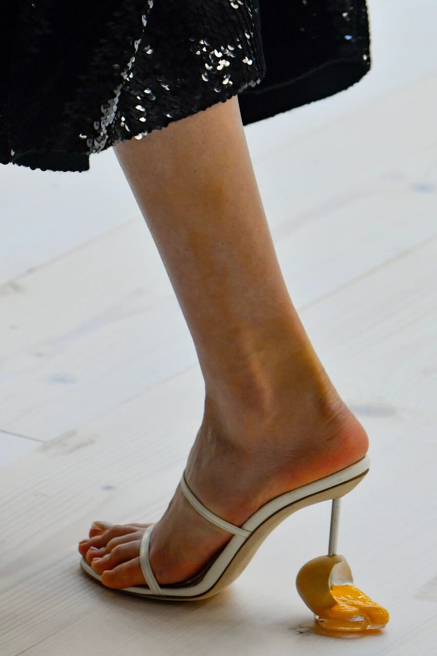 最普通的日常物品被重新詮釋,賦予了前所未有的時尚價值。在一個由社交媒體主導的社會,設計師需要以創意引起轟動。回顧 2020 年代初期的時裝展,便可見一斑。例如,Loewe 在 2022 春夏系列中推出的「蛋形高跟鞋」,以及 Moschino 的「法式長棍麵包Clutch」,這些單品在首次亮相時迅速在 Instagram 上掀起熱潮。原因很簡單,公眾喜歡看到這些既有趣又充滿怪誕感的作品,有時甚至帶點爭議。