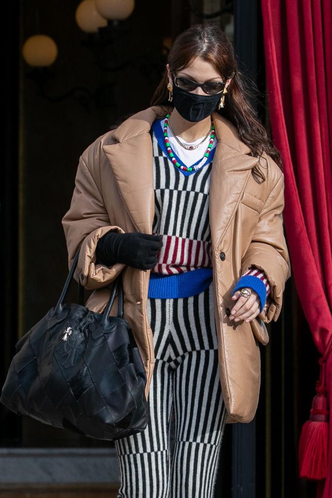 PARIS, FRANCE - JANUARY 28: Model Bella Hadid is seen on January 28, 2021 in Paris, France. (Photo by Marc Piasecki/GC Images)