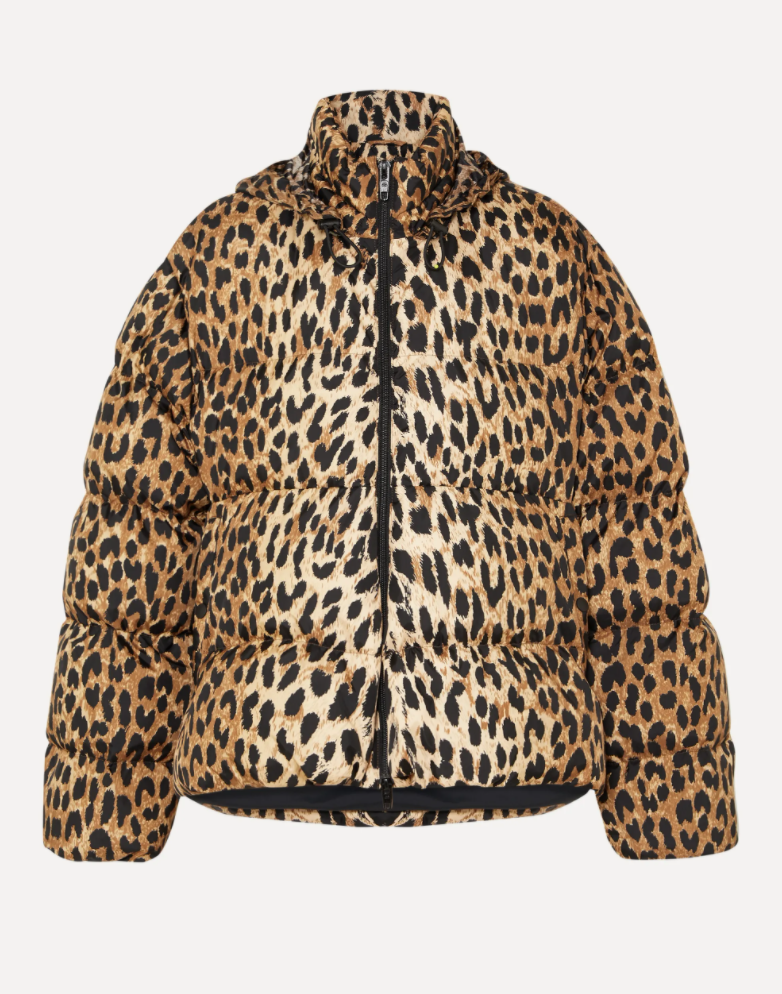 C-Shape hooded leopard-print quilted shell jacket
