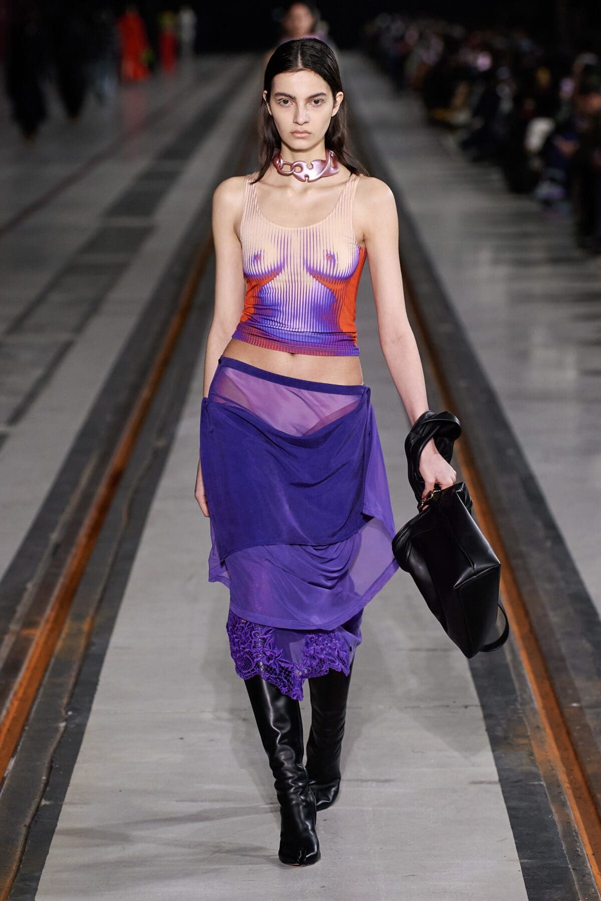 Y/Project與傳奇設計師Jean Paul Gaultier的聯名系列,將經典與現代設計語言融為一體,掀起了一場跨時代的創意對話。創意總監Glenn Martens在本系列中,以「錯視(trompe-l’œil)」為藝術語言,Jean Paul Gaultier標誌性的身體圖案被重新詮釋,轉化為背心、緊身上衣等服飾的設計元素,並融合了熱感圖像的人體印花,將身體曲線與設計形式緊密聯繫,賦予了服裝一種動態的張力。