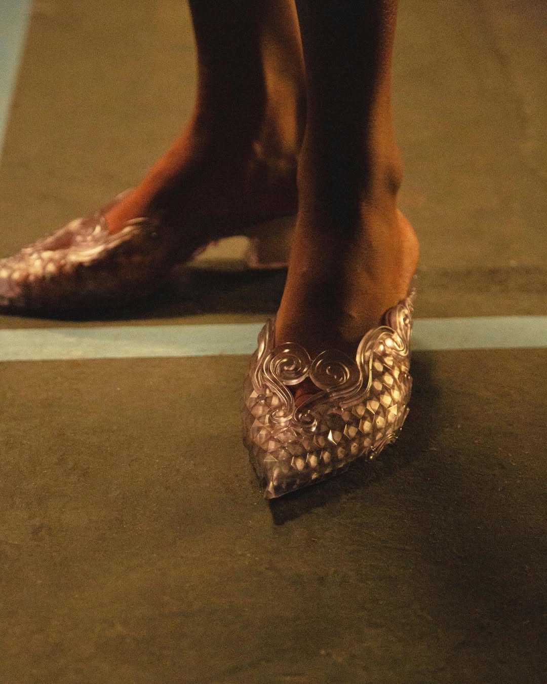 Y/Project與巴西環保膠鞋品牌Melissa的聯名系列,是品牌挑戰傳統設計的經典範例。由創意總監Glenn Martens主導合作設計,系列以可回收材質為基礎,運用Melissa標誌性的透明PVC材質,重新解構鞋履設計語言。Y/Project巧妙地將鞋身線條扭曲延伸,形成前衛而動感的雕塑感,讓一雙簡單的膠鞋煥發藝術氣息。
