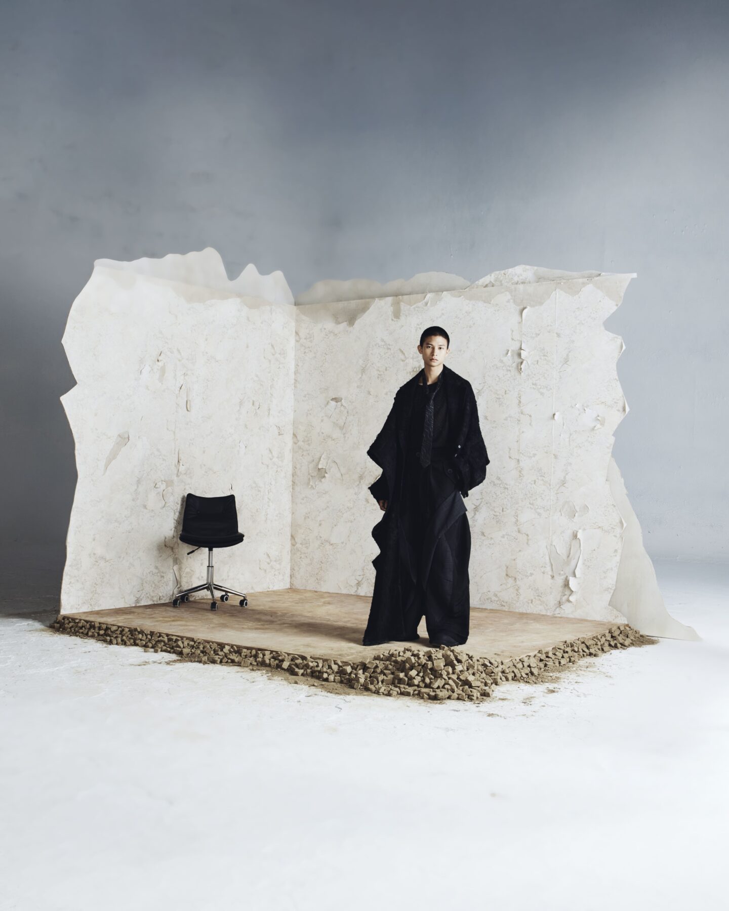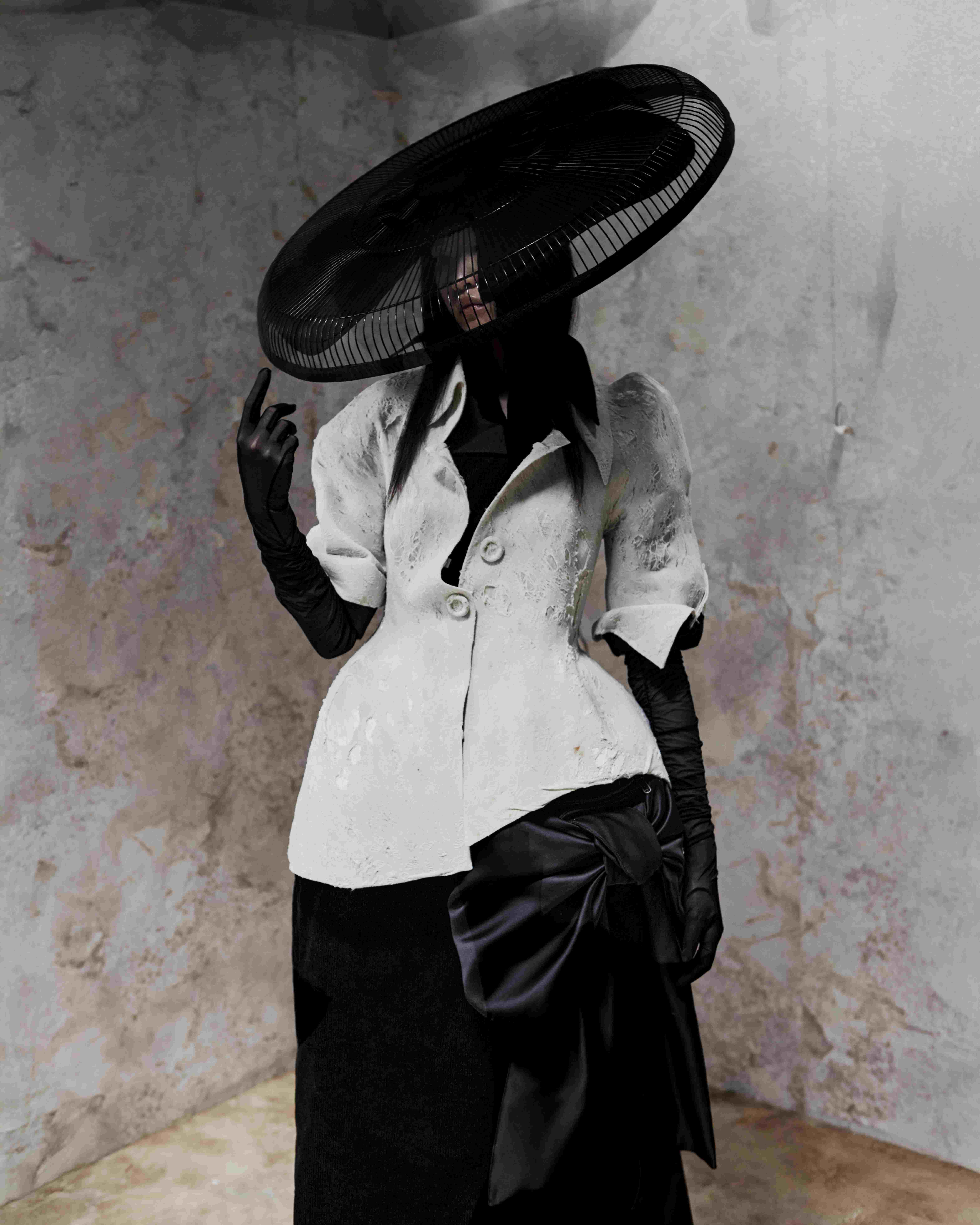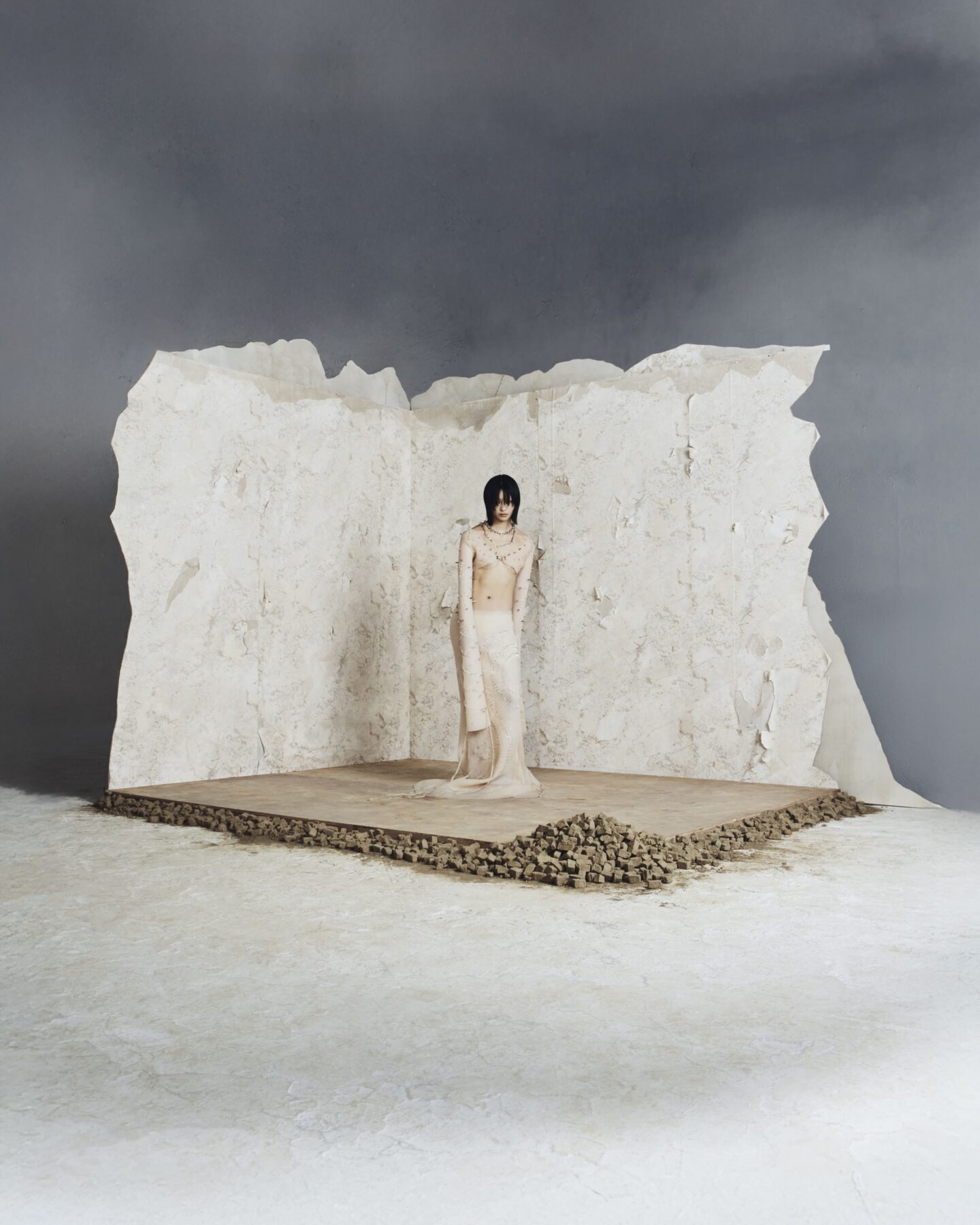 今次她帶來的系列名為《Duhkha》,以佛教中的「苦」為概念,將痛苦視為成長的催化劑。TY 受藝術家阿部幸子(Sachiko Abe)的剪紙藝術啟發,將白布切割成細條並層疊成輕柔形態,模擬冥想與重複工藝所帶來的心靈平靜。系列透過輕盈面料與層次剪裁,詮釋痛苦的脆弱與韌性,通過四階段設計追溯「苦」的旅程,頌揚內在韌性與轉化的美。在 TY 看來,痛苦非必須解決的「問題」,有時我們應該學會接納,與之共存。