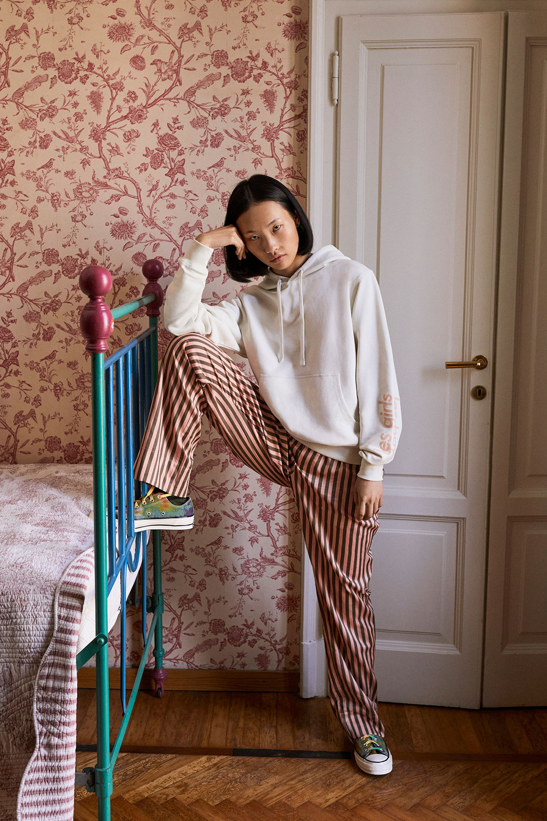 由可在室內和室外穿著的衣櫥必備品組成,當中包括條紋睡衣套裝、長褲和短褲,以及品牌拿手的內衣款式,搭配柔軟的針織毛衣、連帽衫、運動褲以及 T-shirt 並且由 XS 到 XXL號一應俱全。