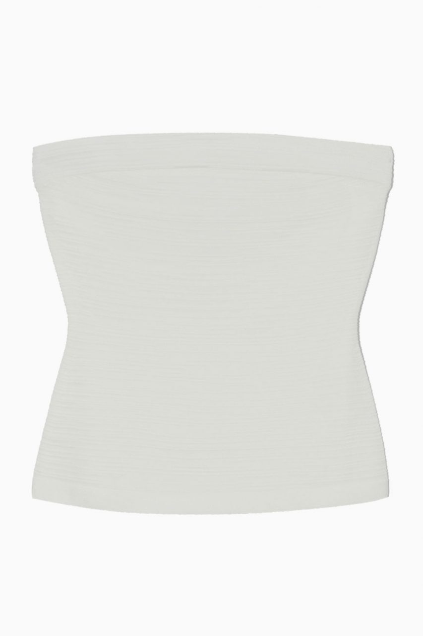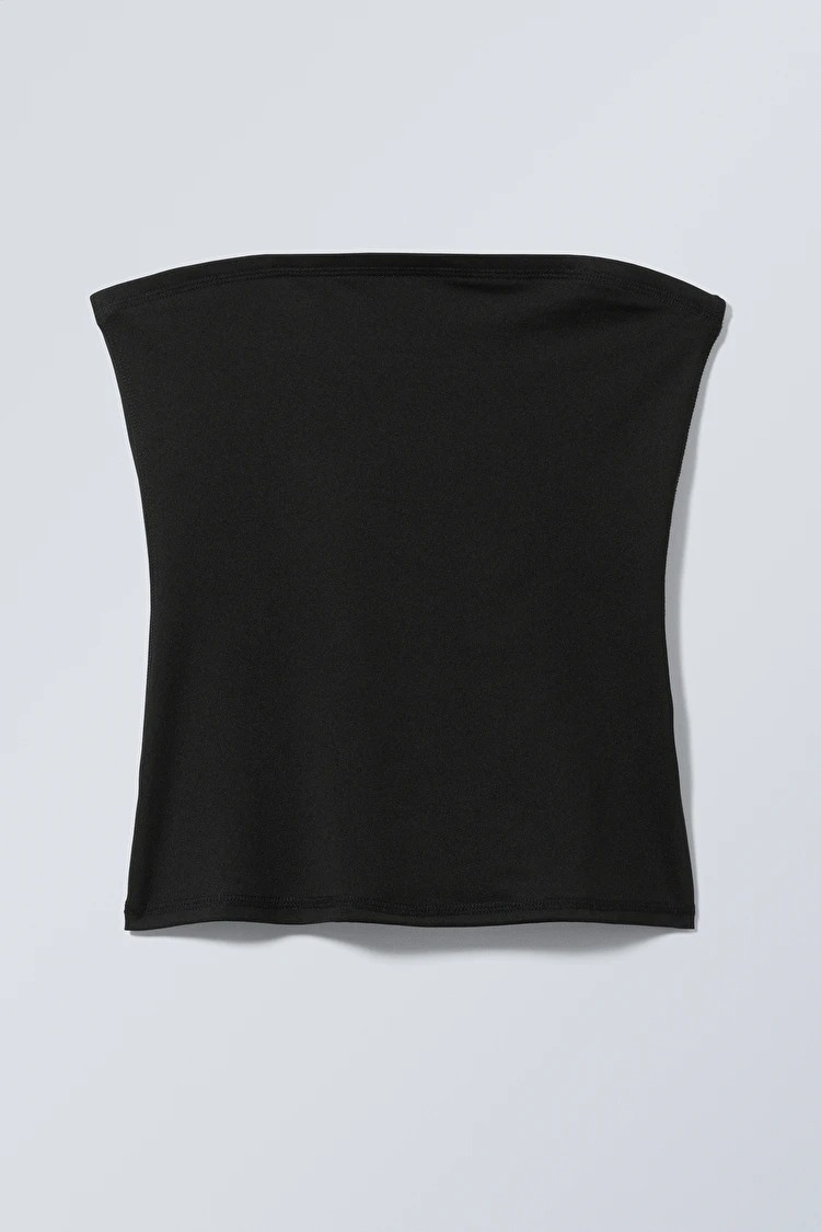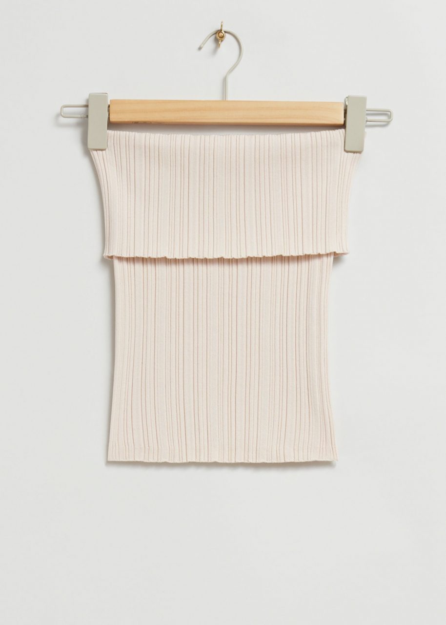 無肩帶上衣符合時下大熱的極簡主義風格,Zendaya 將澳洲時尚品牌 Venroy 的簡約黑色針織抹胸上衣與一條寬褲搭配。而黑色或白色的緊身抹胸上衣已在今年夏天成為時尚名人圈之間的流行趨勢,例如 Emily Ratajkowski 和 Laura Harrier 等明星都紛紛將這款必備單品加入了她們的每日衣櫥中。