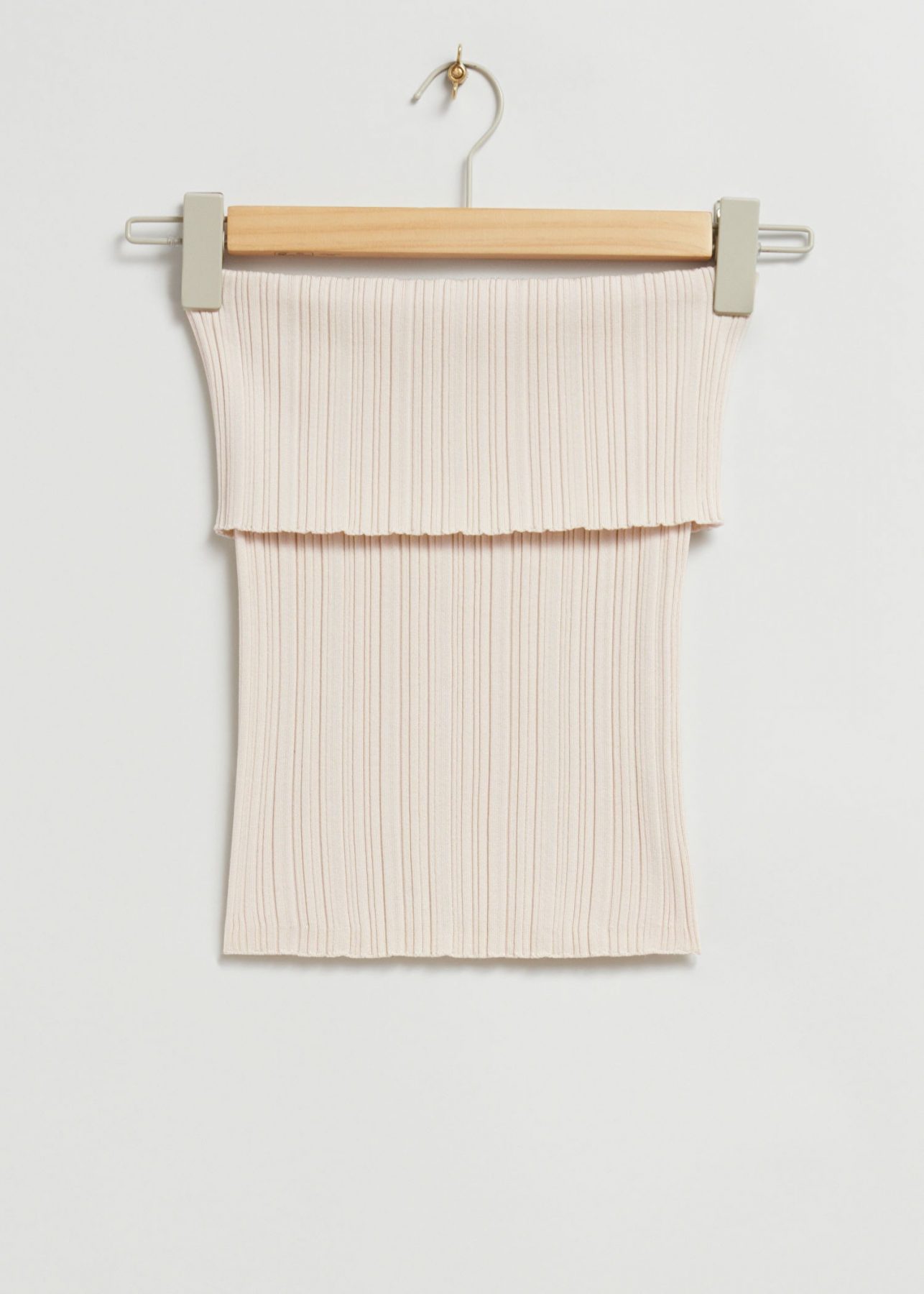 無肩帶上衣符合時下大熱的極簡主義風格,Zendaya 將澳洲時尚品牌 Venroy 的簡約黑色針織抹胸上衣與一條寬褲搭配。而黑色或白色的緊身抹胸上衣已在今年夏天成為時尚名人圈之間的流行趨勢,例如 Emily Ratajkowski 和 Laura Harrier 等明星都紛紛將這款必備單品加入了她們的每日衣櫥中。