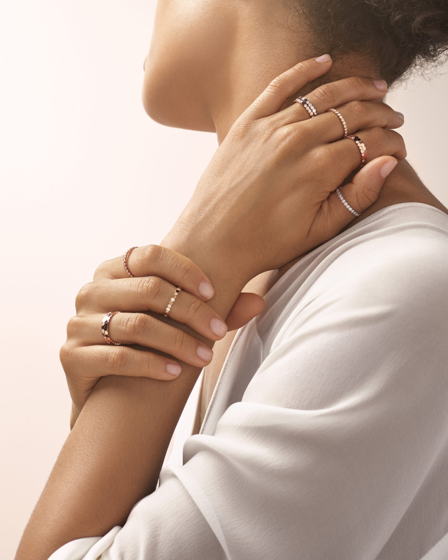 Chaumet Bee My Love玫瑰金手鏈,鑲嵌7顆Taille Impératrice形鑽石(各重0.23克拉) HK$238,000 Chaumet Bee My Love玫瑰金戒指,鑲嵌3顆Taille Impératrice形鑽石(各重0.23克拉) HK$90,400