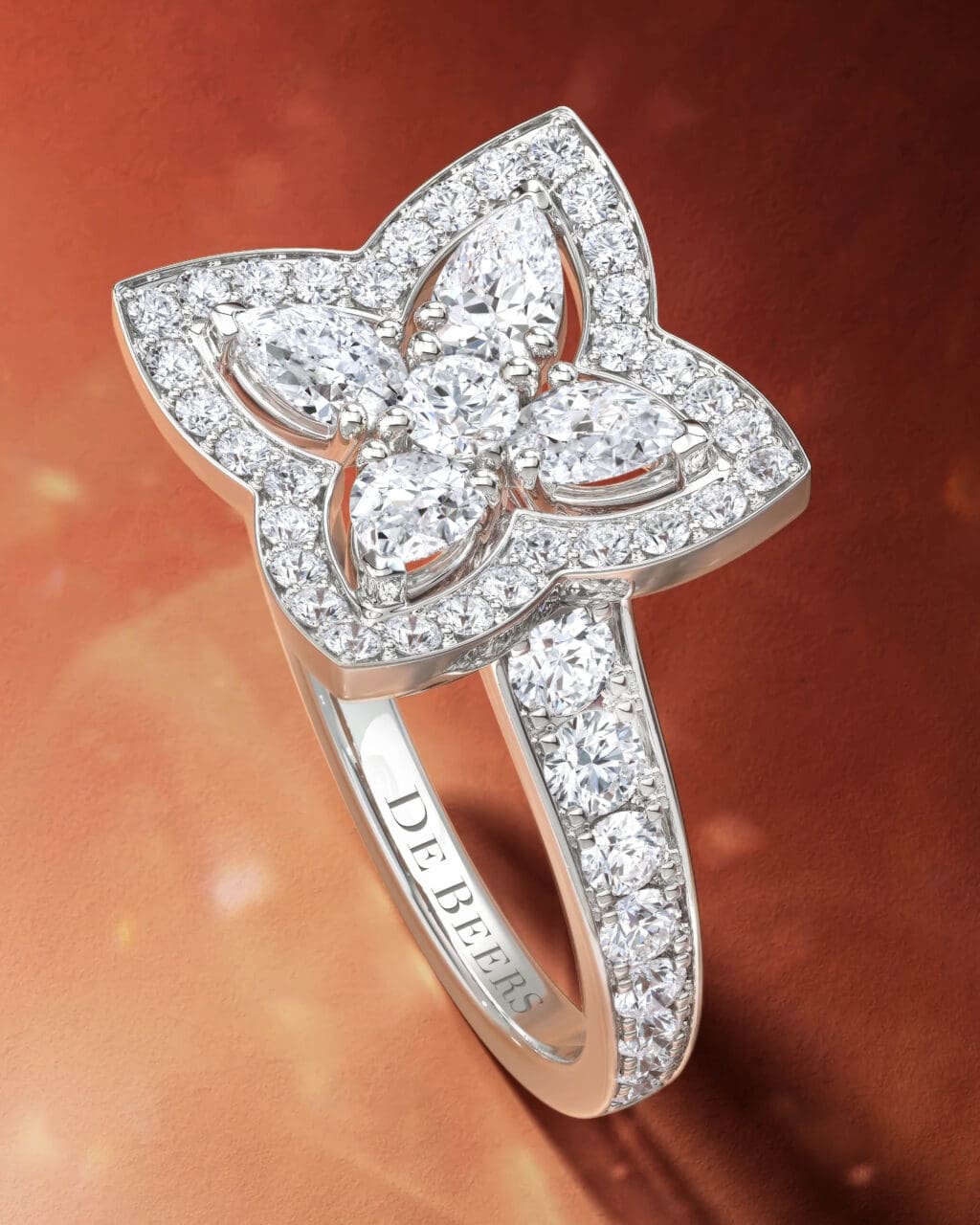 Enchanted Lotus自2009年推出,的確已成為了一個恆久雋永的標誌,讓人一眼便能辨認出是De Beers Jewellers的代表性設計——圖案以現代感的幾何線條展現蓮花的含蓄美態,平衡的花瓣結構優雅洗練,捕捉蓮花朝開暮合的特質,彰顯生命的力量。