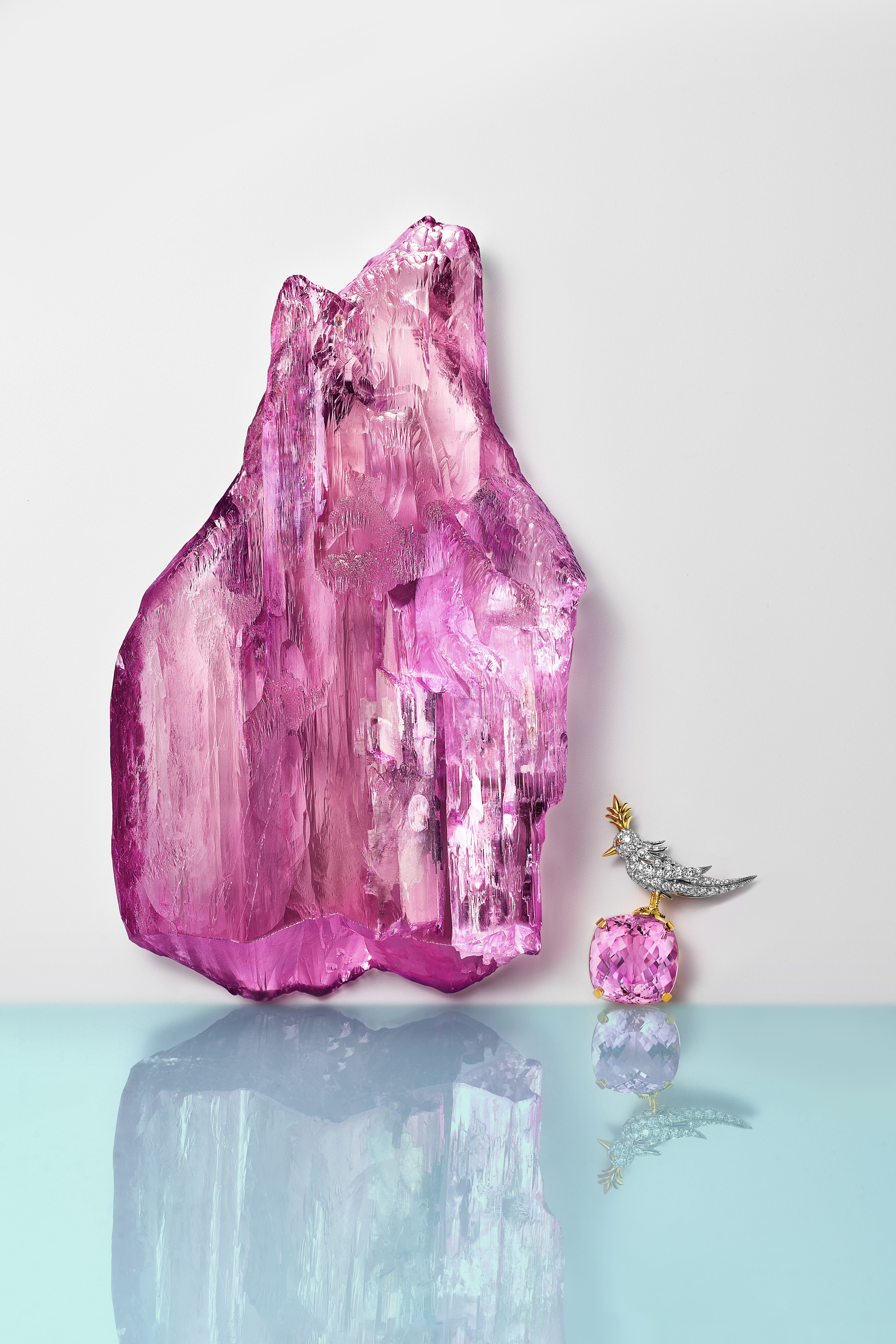 今年,品牌搜羅了一枚重達7,500卡的珍稀紫鋰輝石(Kunzite),將之化身為10顆量身打造的寶石,並鑲嵌於品牌經典「Bird on a Rock」胸針的高級珠寶限量系列中,為 Jean Schlumberger 於1965年設計的經典小鳥意象60周年獻上最獨特的禮讚,象徵Tiffany & Co.在寶石歷史上寫下又一重要里程碑。