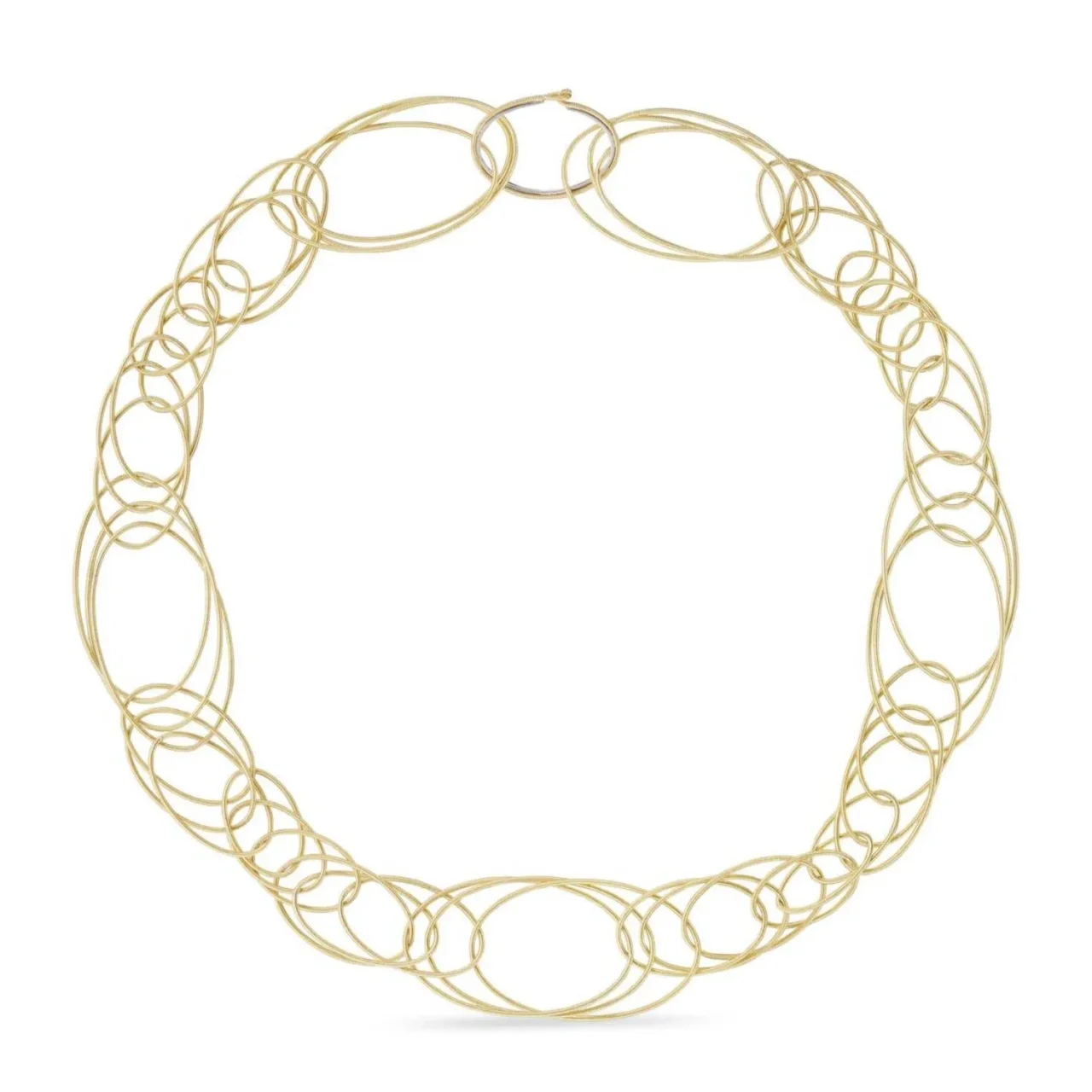 Hawaii系列以未來主義藝術思潮為靈感,結合品牌原創的獨特扭金工藝,展現別具一格的動態美感。這一系列的標誌性風格,源於⾦匠將珍稀⾦屬拉伸成絲絲纖⻑⾦線,再以人手把多個精緻金質圓環的交織相連。而全新Hawaii Oval系列則在此基礎上進一步演繹,大小不一的金質橢圓圓環層層交疊,為整體設計增添靈動趣味與層次,佩戴時能散發迷人魅力,並在聖誕燭光中閃爍柔和光芒。