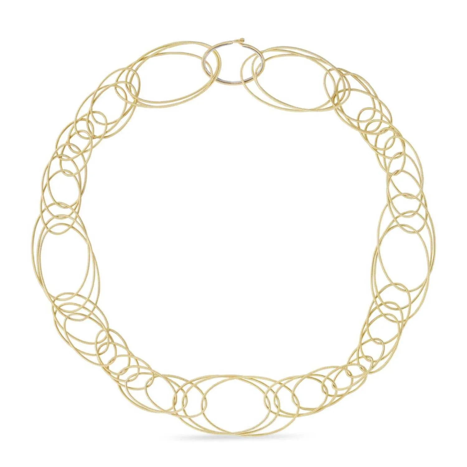 Hawaii系列以未來主義藝術思潮為靈感,結合品牌原創的獨特扭金工藝,展現別具一格的動態美感。這一系列的標誌性風格,源於⾦匠將珍稀⾦屬拉伸成絲絲纖⻑⾦線,再以人手把多個精緻金質圓環的交織相連。而全新Hawaii Oval系列則在此基礎上進一步演繹,大小不一的金質橢圓圓環層層交疊,為整體設計增添靈動趣味與層次,佩戴時能散發迷人魅力,並在聖誕燭光中閃爍柔和光芒。