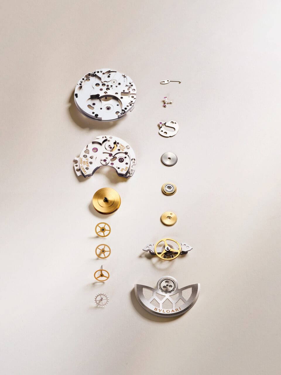 BVLGARI 全新的自家製BVS100 Lady Solotempo機芯由多個精密零件組成,動力儲存達50小時。