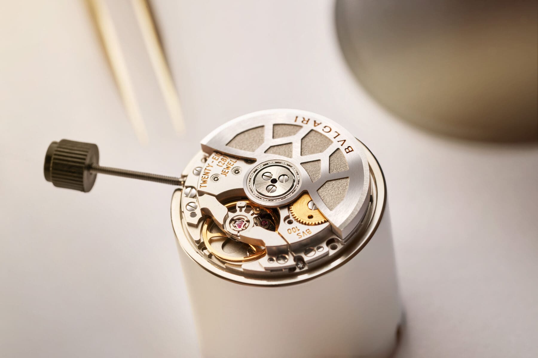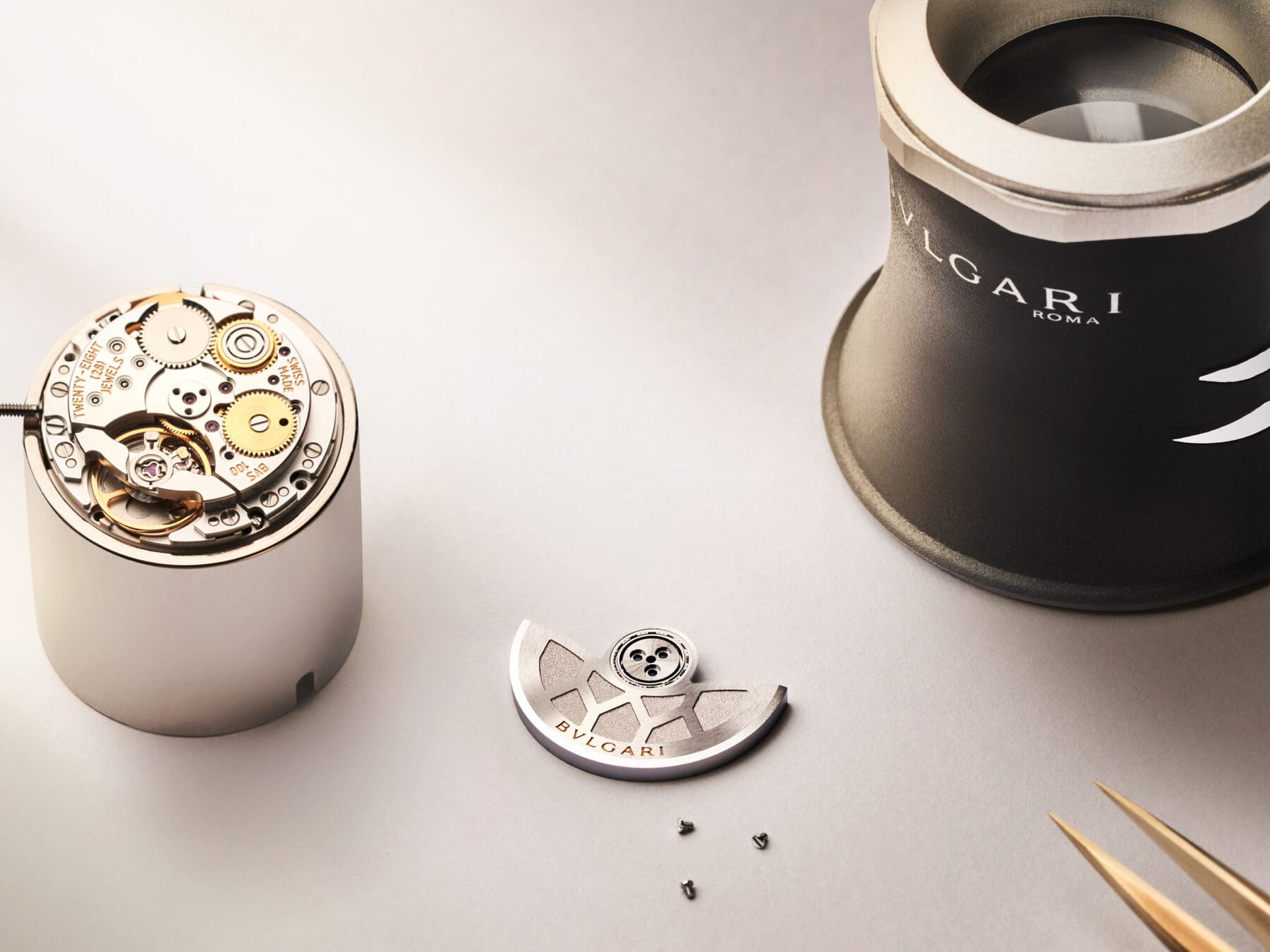 BVLGARI 全新的自家製BVS100 Lady Solotempo機芯由多個精密零件組成,動力儲存達50小時。