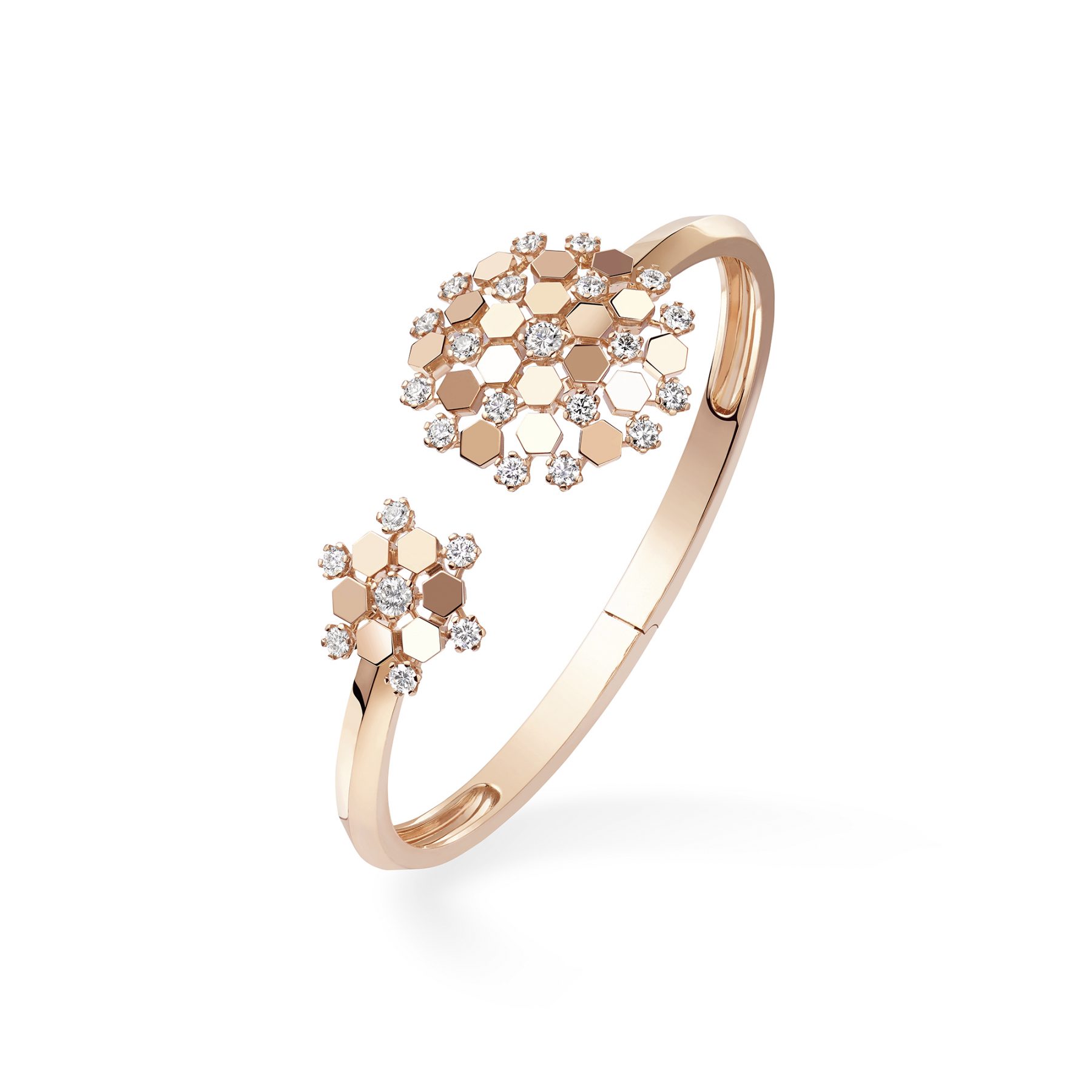 Bee My Love系列的另一搶眼新作,莫過於這款新登場的玫瑰金耳骨夾。它秉承Bee My Love系列戒指的設計語彙,以靈巧的蜂巢造型為核心,配以閃耀的鑽石,散發出時尚前衛的魅力。