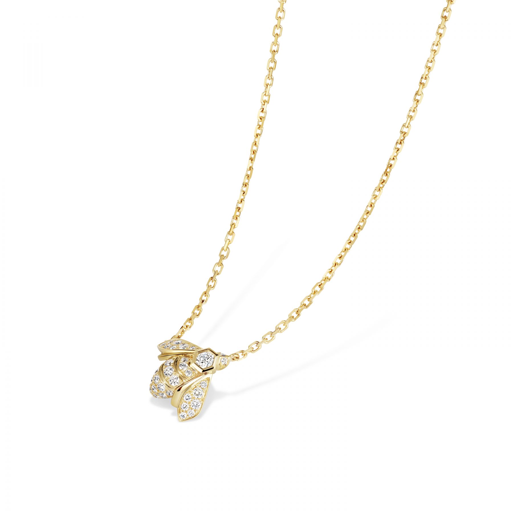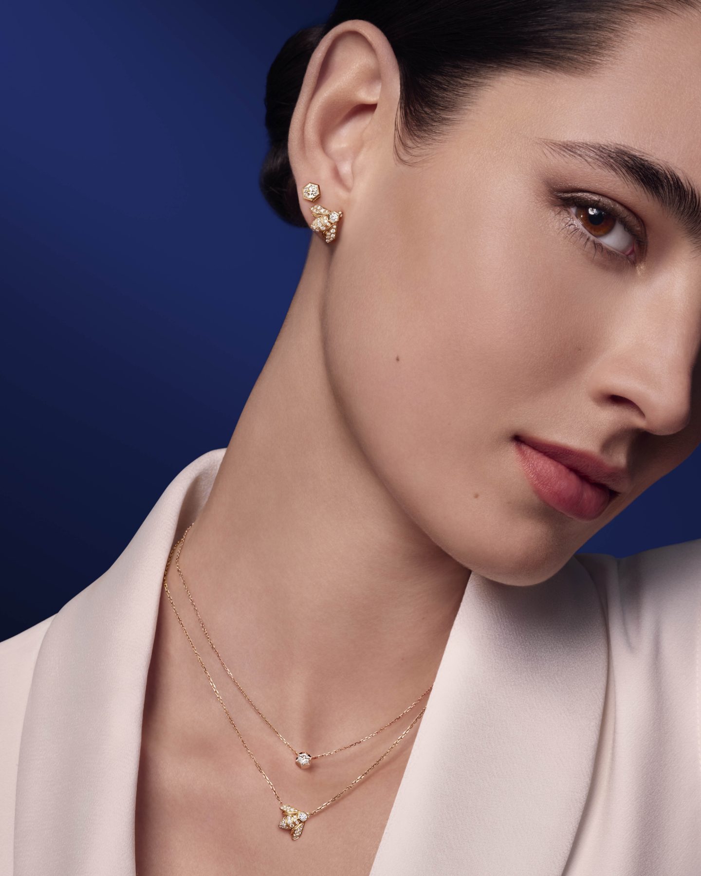 Bee My Love系列的項鏈新作同樣別具匠心。以黃金為材質製成蜜蜂的身體和翅膀,塑造蜜蜂栩栩如生的姿態,並鋪鑲明亮式切割美鑽,展現出皇權般的迷人魅力。無論是單獨佩戴,還是與系列其他配件搭配,Bee My Love項鏈都能為造型增添獨特的個人風格。