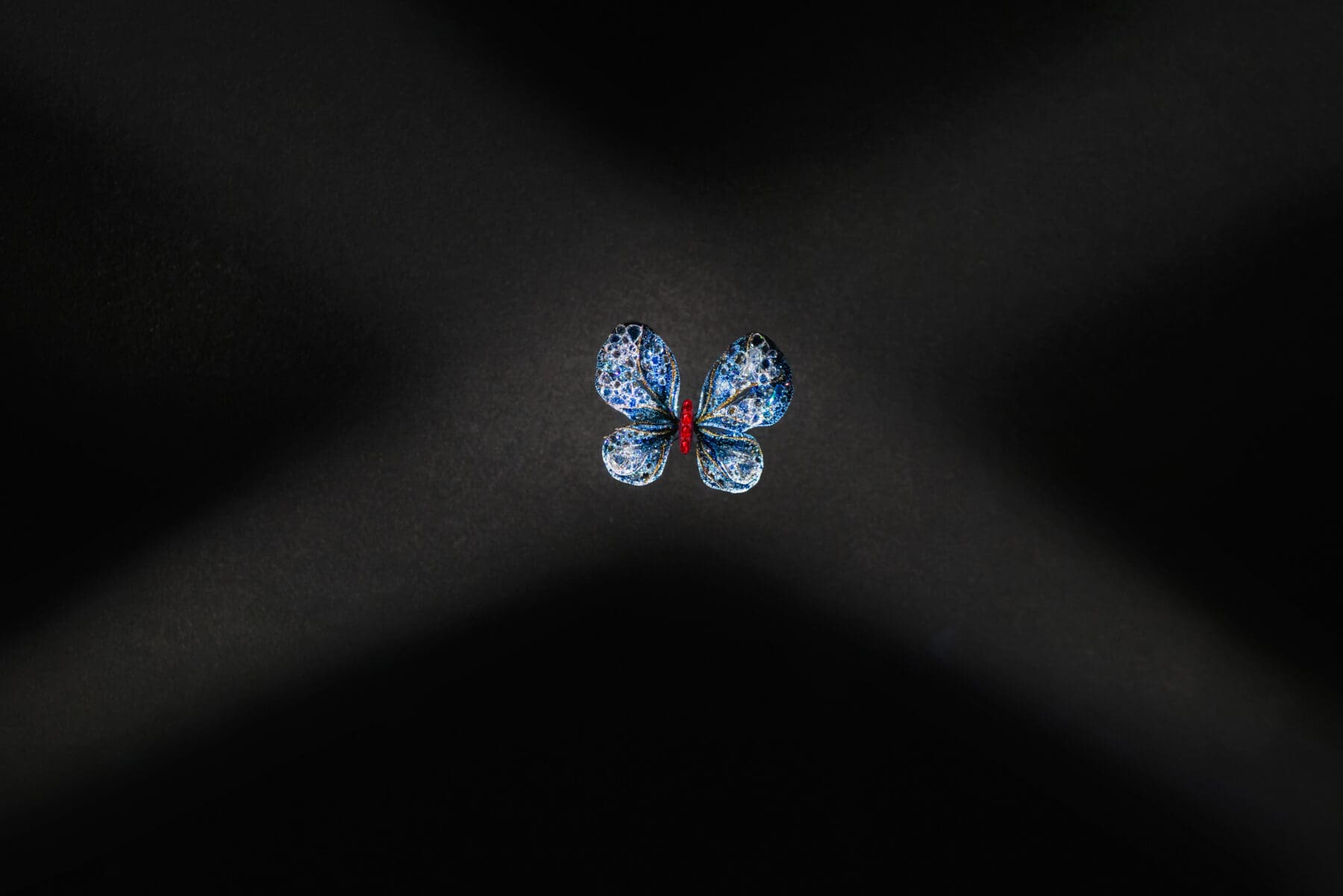 壓軸展品──2019 Black Label Masterpiece I 極光蝴蝶,輕盈地置於由四國團隊打造的飄浮展櫃中,以精湛鈦金屬工藝打造的極光蝴蝶,彷彿被施了魔法般,在空間中翩翩起舞。
