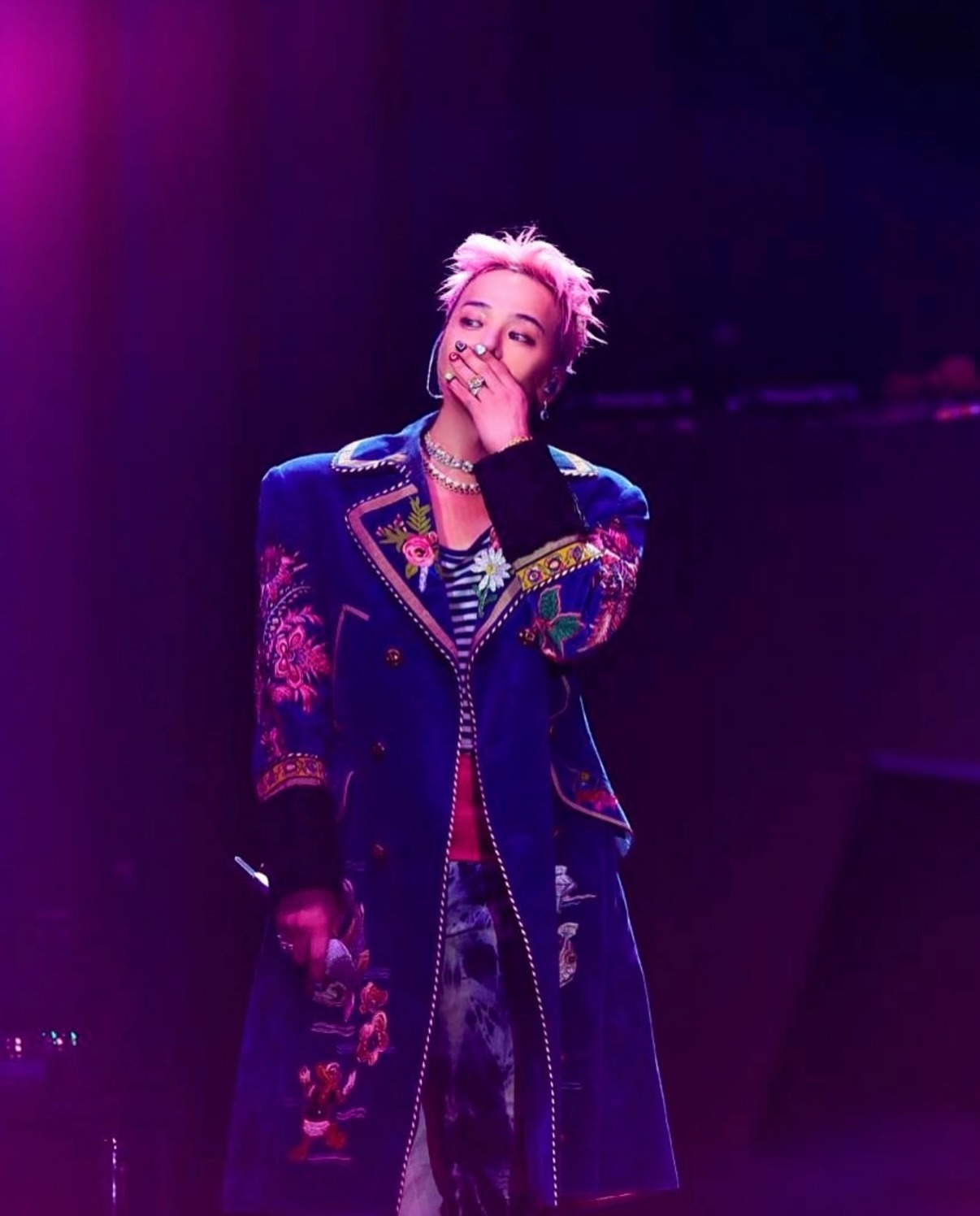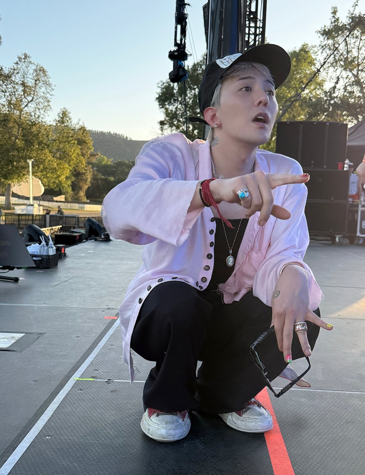 在洛杉磯舉辦的《Head In The Clouds》音樂節舞台上,G-Dragon 以藍色刺繡大衣與 Nudo 高級珠寶系列 Tanzanite 耳環搭配,視覺效果搶眼。耳環主石為色澤深邃的坦桑石,外圍鑲有 147 顆白鑽,寶石以自然形態切割,展現出未經過度修飾的天然光影與質感。