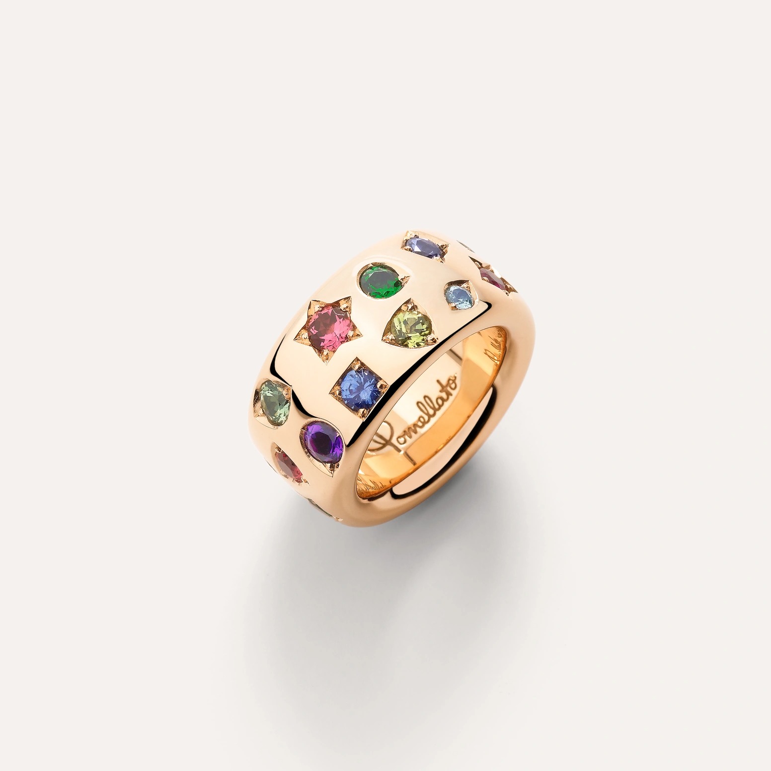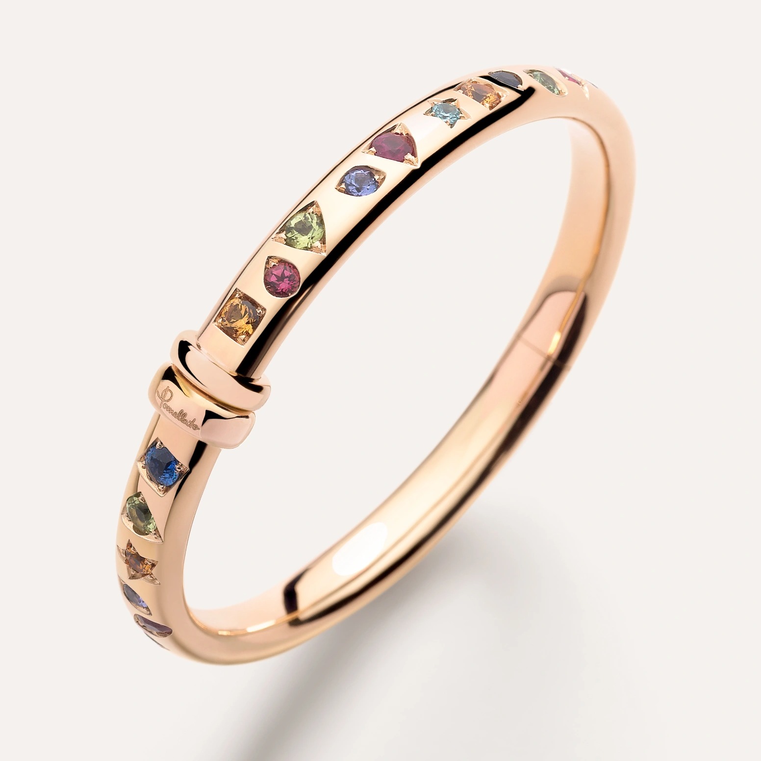 創立於 1967 年的 Pomellato,是首個將時尚語言融入高級珠寶設計的意大利品牌。品牌風格承襲米蘭的精緻與前衛,重視比例與材質的運用,也講究佩戴時的自由度與舒適感。標誌性的厚實輪廓、不對稱設計與色彩鮮明的寶石排列,一再顛覆傳統對珠寶的既定印象。作品皆由米蘭工坊手工製作,從寶石切割到金屬打磨,每一道工序都體現意大利金工的工藝底蘊。