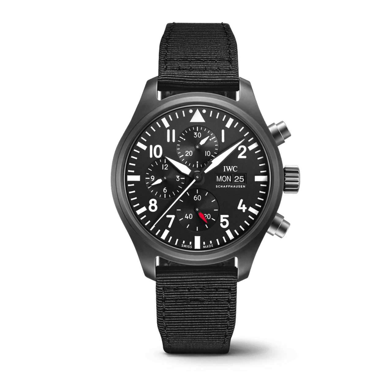 IWC自1936年推出首款飛行腕錶以來,便以此為品牌核心系列之一。2007年起更獲美國海軍授權製作Top Gun 海軍空戰部隊系列腕錶。而它的民用款式不僅融合創新科技,還結合瑞士傳統製錶工藝,把鋁化鈦或陶瓷材質應用在錶殼之上。。以Pilot’s Watch Chronograph TOP GUN腕錶為例,這款腕錶搭載的69380自動機芯,具有46小時的動力儲備,配備星期、日期顯示的黑色錶盤,並具備計時功能。其44.5毫米的黑色陶瓷錶殼與黑色織物錶帶相得益彰,展現專業與堅毅特質。