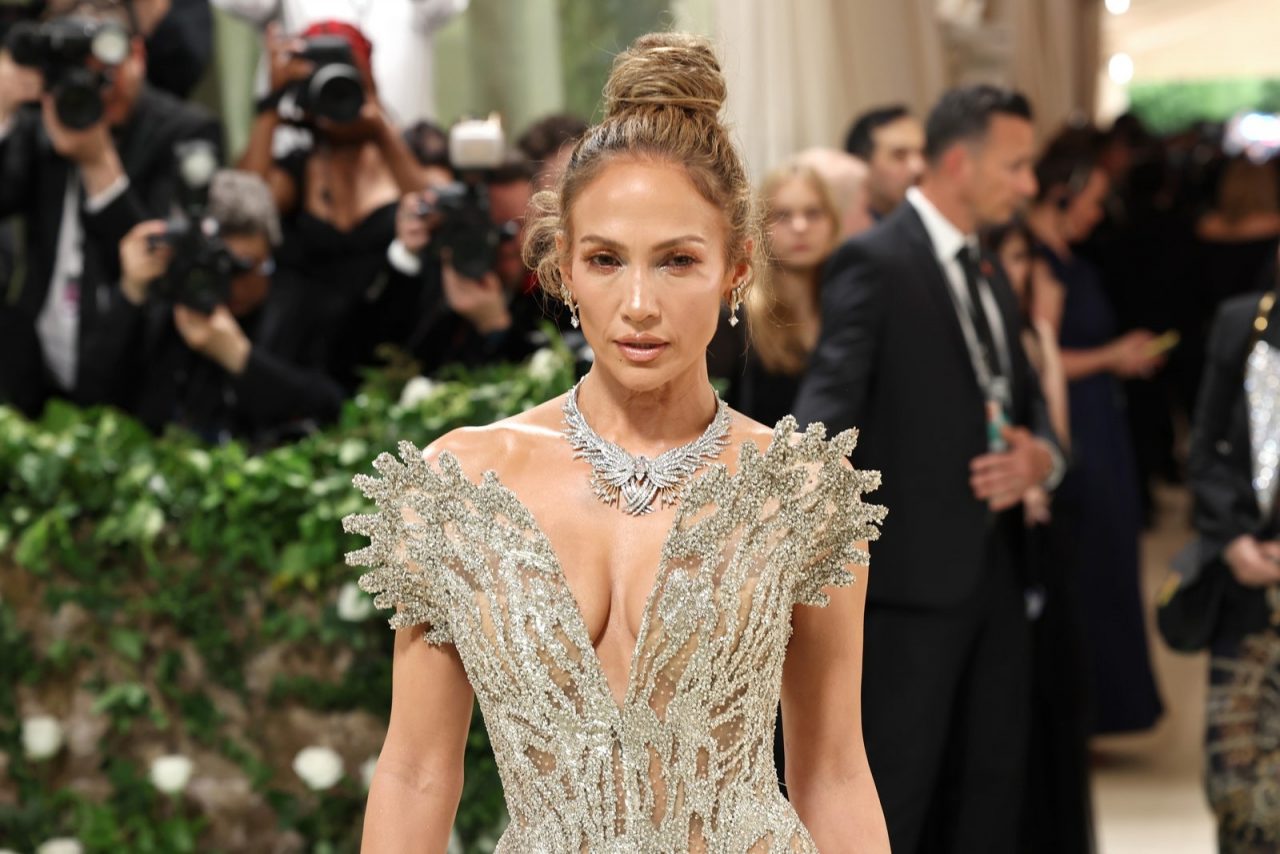 Jennifer Lopez in a Tiffany & Co. necklace, earrings, bracelet, and a ring.