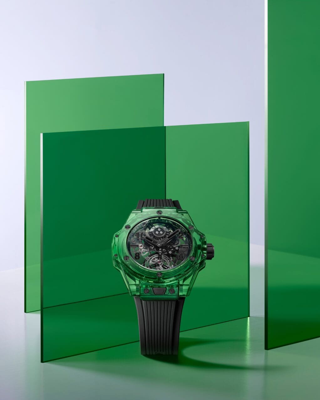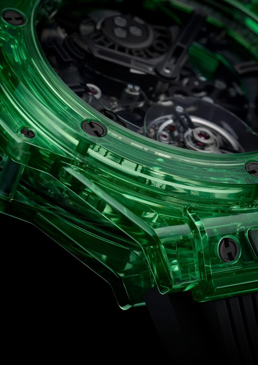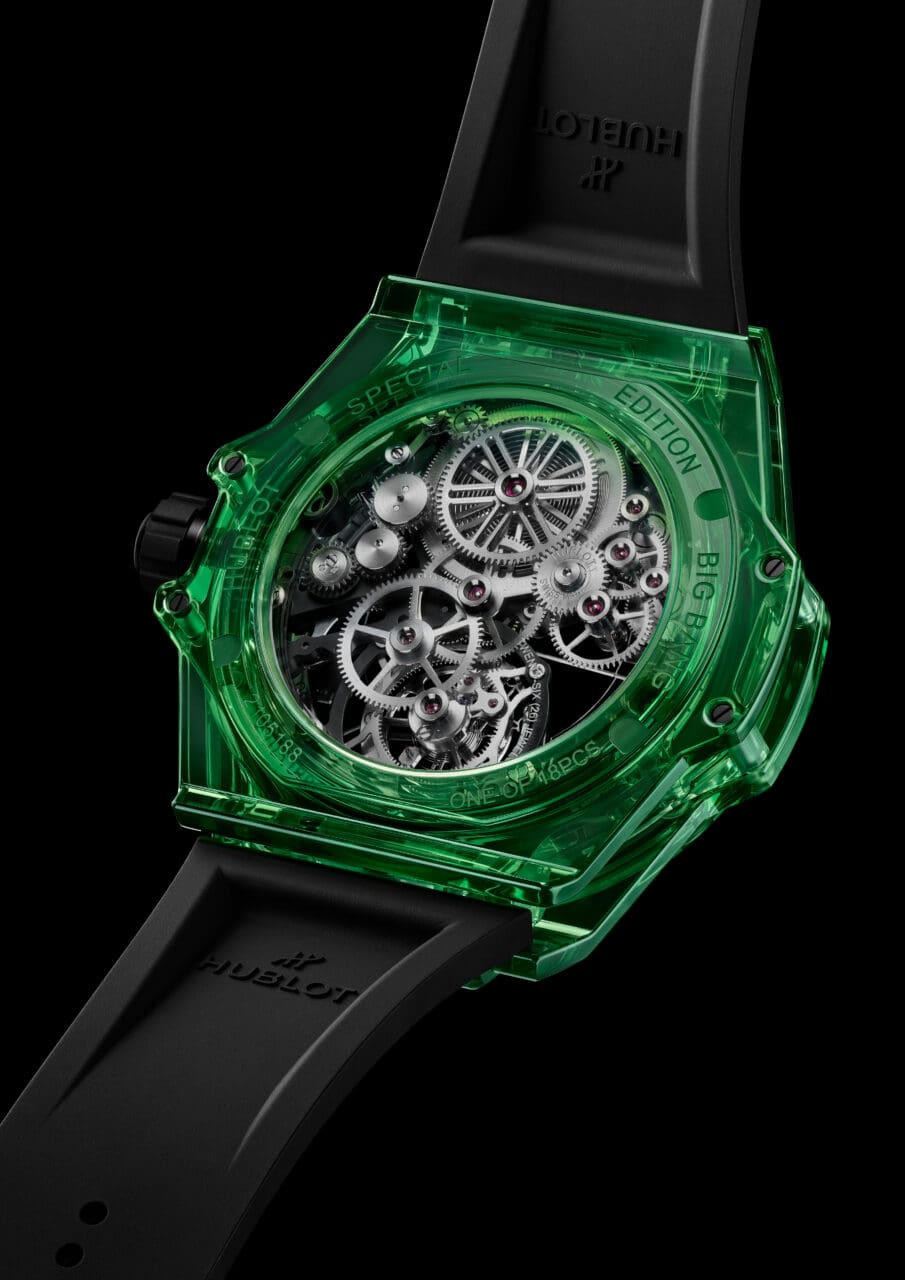 Hublot Big Bang Tourbillon Automatic Green SAXEM腕錶:耀眼SAXEM材質,能折射出比寶石更奪目的色澤