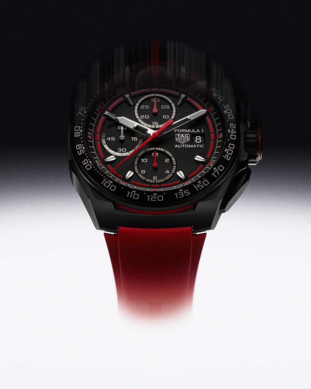 TAG Heuer的Formula 1腕錶於1986年首次推出,更是首款以品牌名稱命名的腕錶。此次全新版本以「夜間大賽車」為設計概念,以黑色為主調,並點綴紅、藍、綠等多種色彩,搭配相應色調的橡膠錶帶,展現出活力四射的個性。