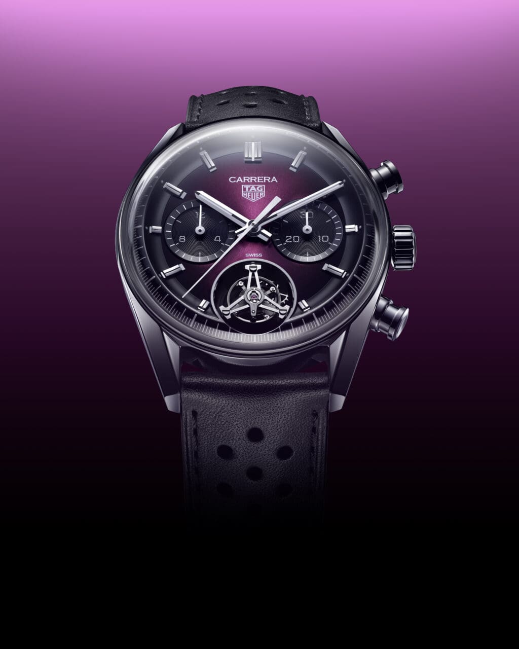 漸變黑紫的Carrera Chronograph腕錶還提供搭載陀飛輪的限量版本。