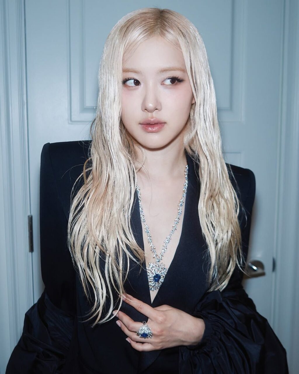 Rosé以完美符合主題的Saint Laurent 黑色禮服出席Met Gala,超大的披肩裙擺也沒法讓人忽視她頸上的Tiffany & Co. 高級珠寶項鏈,因為項鏈中央鑲嵌了超過14卡的藍寶石,旁邊更飾有總重超過13卡的鑽石。