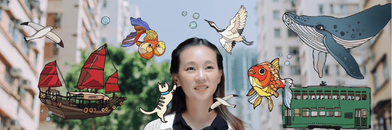 本地藝術家何博欣的作品會出現鯨魚掠過香港舊區上空,長頸鹿登上唐樓天台等異想天開的畫面。