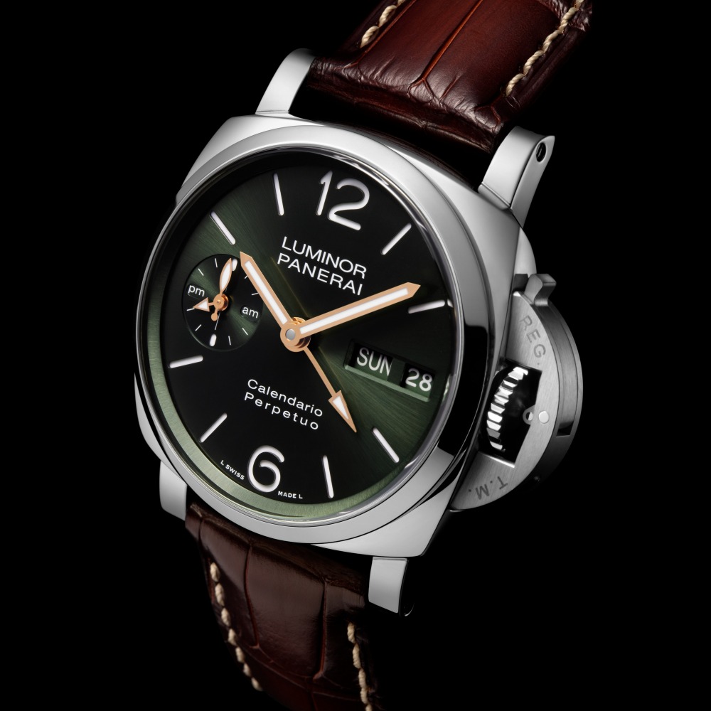 Panerai在2021年推出品牌首枚萬年曆腕錶PAM00715,短短數年時間便把萬年曆功能研究透徹,更把自主研發的萬年曆機芯在Luminor和Radiomir系列的舞台上施展創意,迅速擴展其萬年曆腕錶陣容。今年,他們將品牌專利鉑金Platinumtech™、標誌性的錶冠護橋、萬年曆和兩地時間顯示功能集結在一起,帶來Luminor Perpetual Calendar GMT Platinumtech™腕錶傑作,將品牌的萬年曆腕錶提升至更高境界。