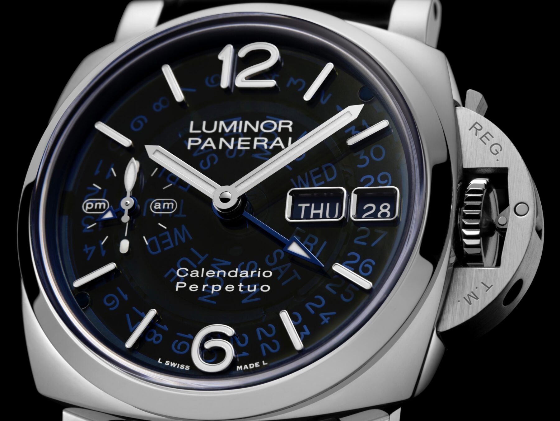 Panerai在2021年推出品牌首枚萬年曆腕錶PAM00715,短短數年時間便把萬年曆功能研究透徹,更把自主研發的萬年曆機芯在Luminor和Radiomir系列的舞台上施展創意,迅速擴展其萬年曆腕錶陣容。今年,他們將品牌專利鉑金Platinumtech™、標誌性的錶冠護橋、萬年曆和兩地時間顯示功能集結在一起,帶來Luminor Perpetual Calendar GMT Platinumtech™腕錶傑作,將品牌的萬年曆腕錶提升至更高境界。