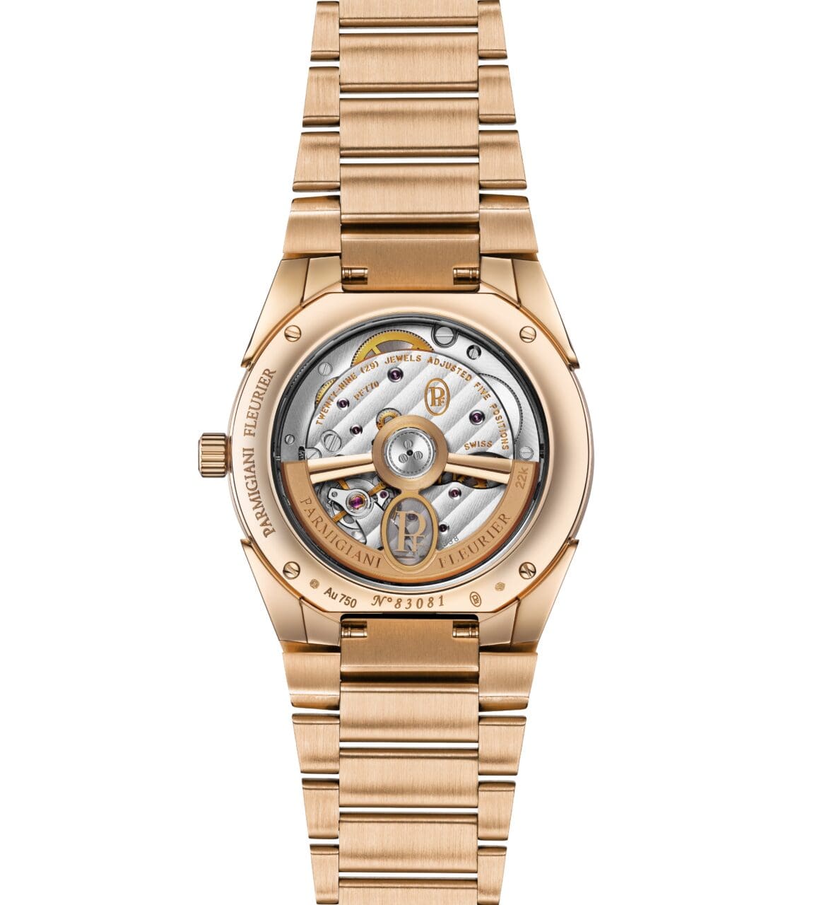 Tonda PF Automatic 36mm腕錶的錶殼厚度僅8.6毫米,搭載專為該系列研發的PF770自動機芯,具有60小時動力儲存和100米的防水性能。透過藍寶石玻璃錶背,亦可直接欣賞到採用22K玫瑰金製成的鏤通擺陀細節。