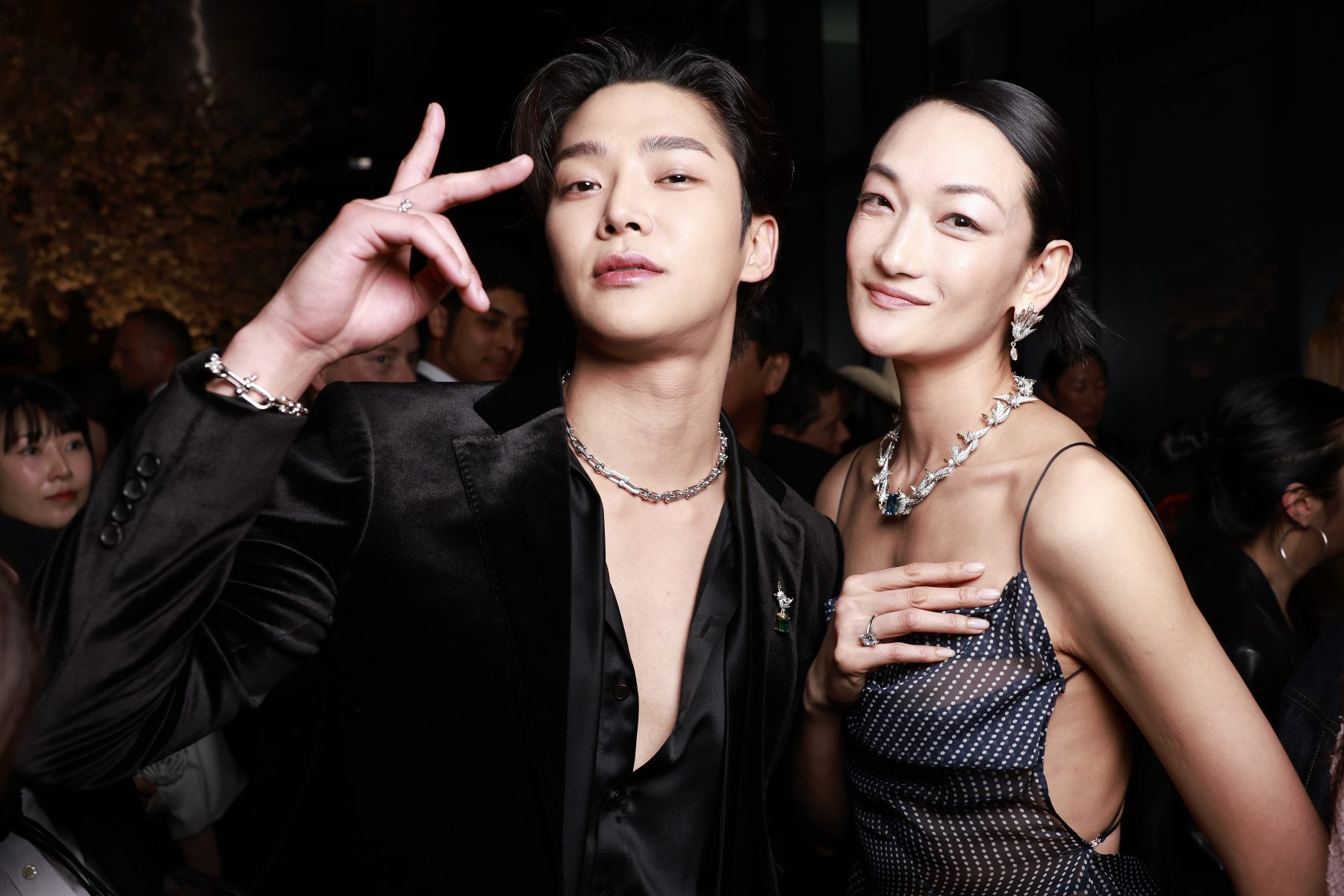 TOKYO, JAPAN - APRIL 11: Rowoon and Ai Tominaga attend Tiffany & Co.'s opening celebration for the House's 'Tiffany Wonder' exhibition at the TOKYO NODE gallery on April 11, 2024 in Tokyo, Japan. (Photo by Hanna Lassen/Getty Images for Tiffany & Co.)