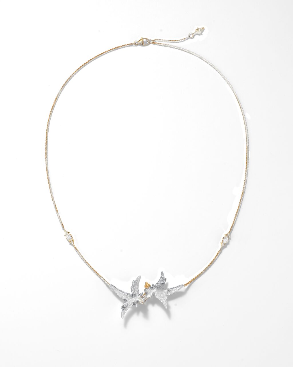 Tiffany & Co.珠寶與高級珠寶首席藝術總監 Nathalie Verdeille 重新演繹這一經典且深遠的意象,延續系列核心形狀——羽翼,創作出全新 Wings 珠寶系列。Verdeille 表示:「我們如同 Schlumberger 一樣深入觀察鳥類,研究牠們的姿態與翅膀結構,打造出仿若即將振翅或駐足停留於佩戴者身上的動態造型。」展露細膩美感與張力的羽毛層疊,透過璀璨鑽石與珍貴金屬展現出振翅高飛的生命力,寓意着希望與無盡的可能性。