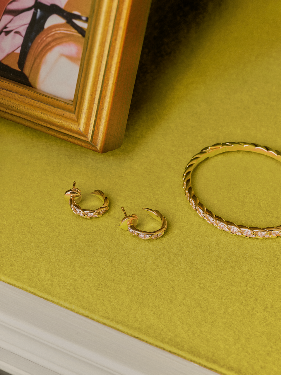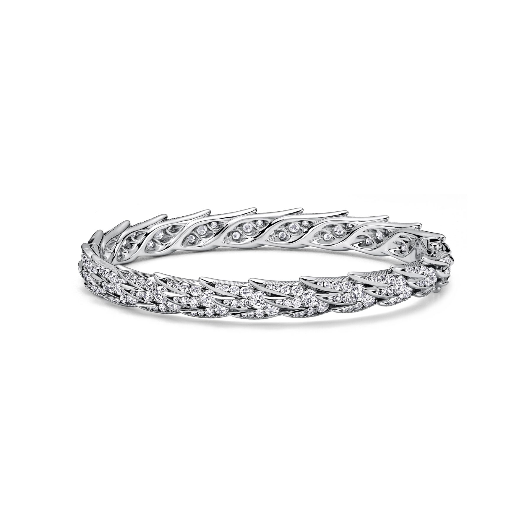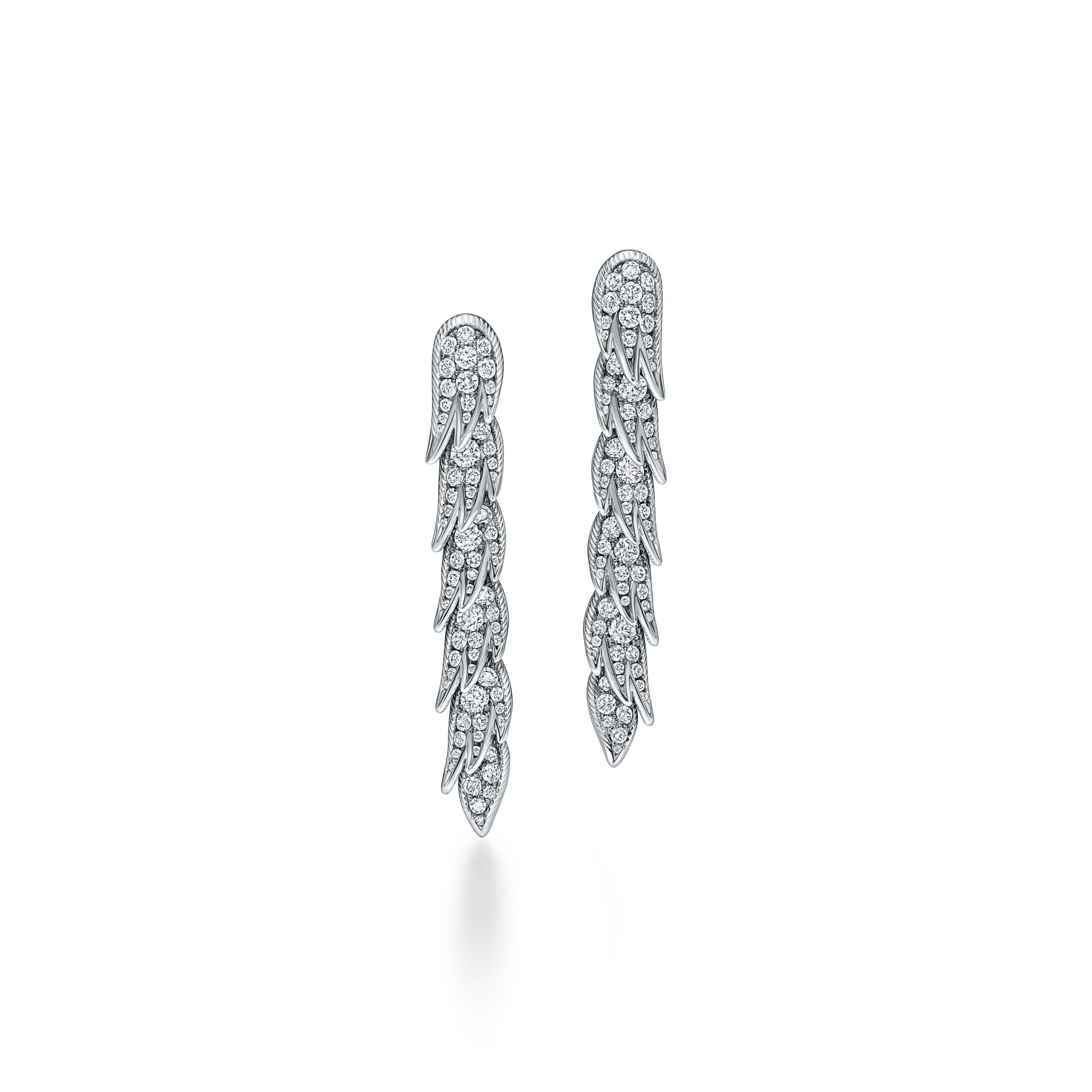 Wings 系列以抽象羽翼為靈感,巧妙運用隱形鑲嵌技術,讓鑽石宛如懸浮於半空。羽毛造型與波浪邊緣層層交疊,襯托出細膩的視覺效果,當中更包括一款可轉換式耳環,從搶眼垂墜造型到精緻耳釘,四種佩戴方式,變化多端的靈活性,展現佩戴者的獨特風格。
