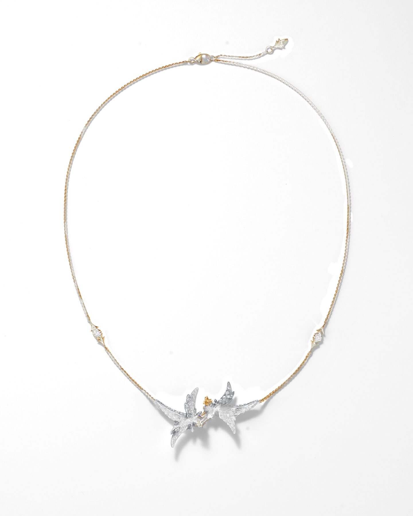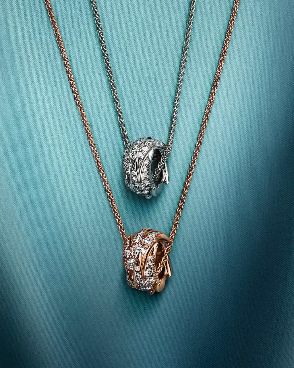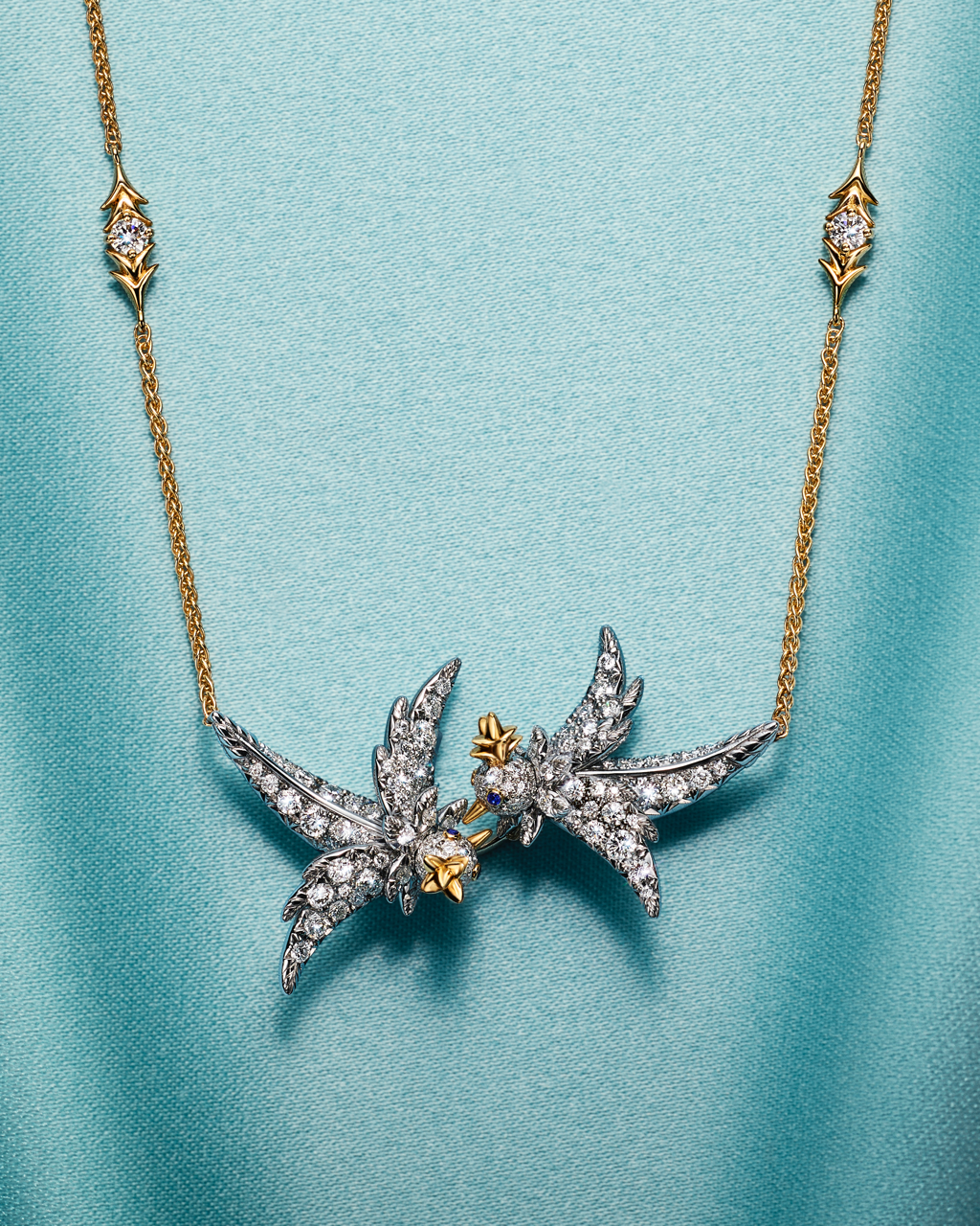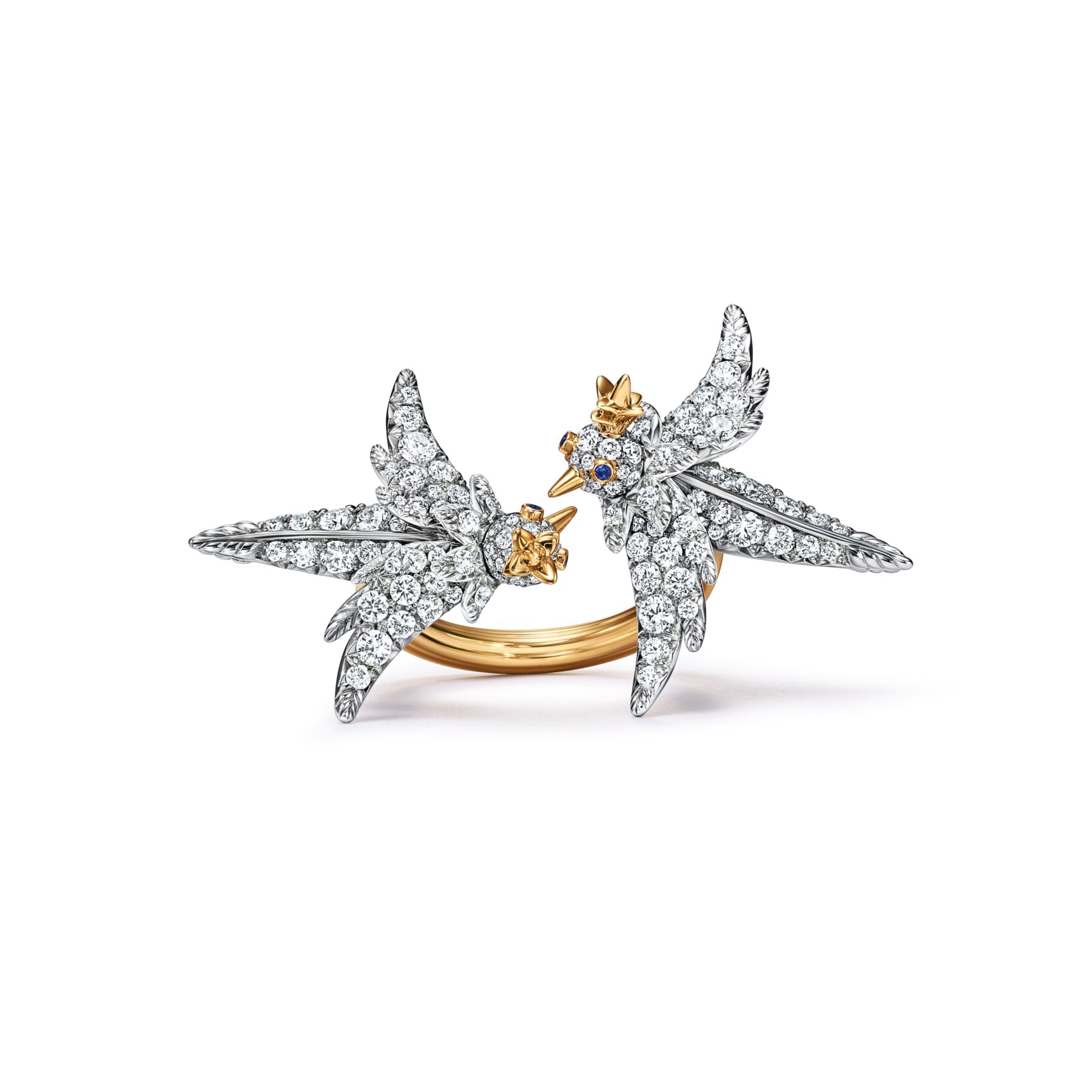 Tiffany & Co.珠寶與高級珠寶首席藝術總監 Nathalie Verdeille 重新演繹這一經典且深遠的意象,延續系列核心形狀——羽翼,創作出全新 Wings 珠寶系列。Verdeille 表示:「我們如同 Schlumberger 一樣深入觀察鳥類,研究牠們的姿態與翅膀結構,打造出仿若即將振翅或駐足停留於佩戴者身上的動態造型。」展露細膩美感與張力的羽毛層疊,透過璀璨鑽石與珍貴金屬展現出振翅高飛的生命力,寓意着希望與無盡的可能性。