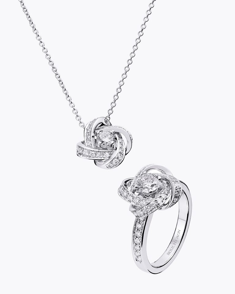 Pivoine白金密鑲鑽石吊墜和 Pivoine單鑽白金戒指
