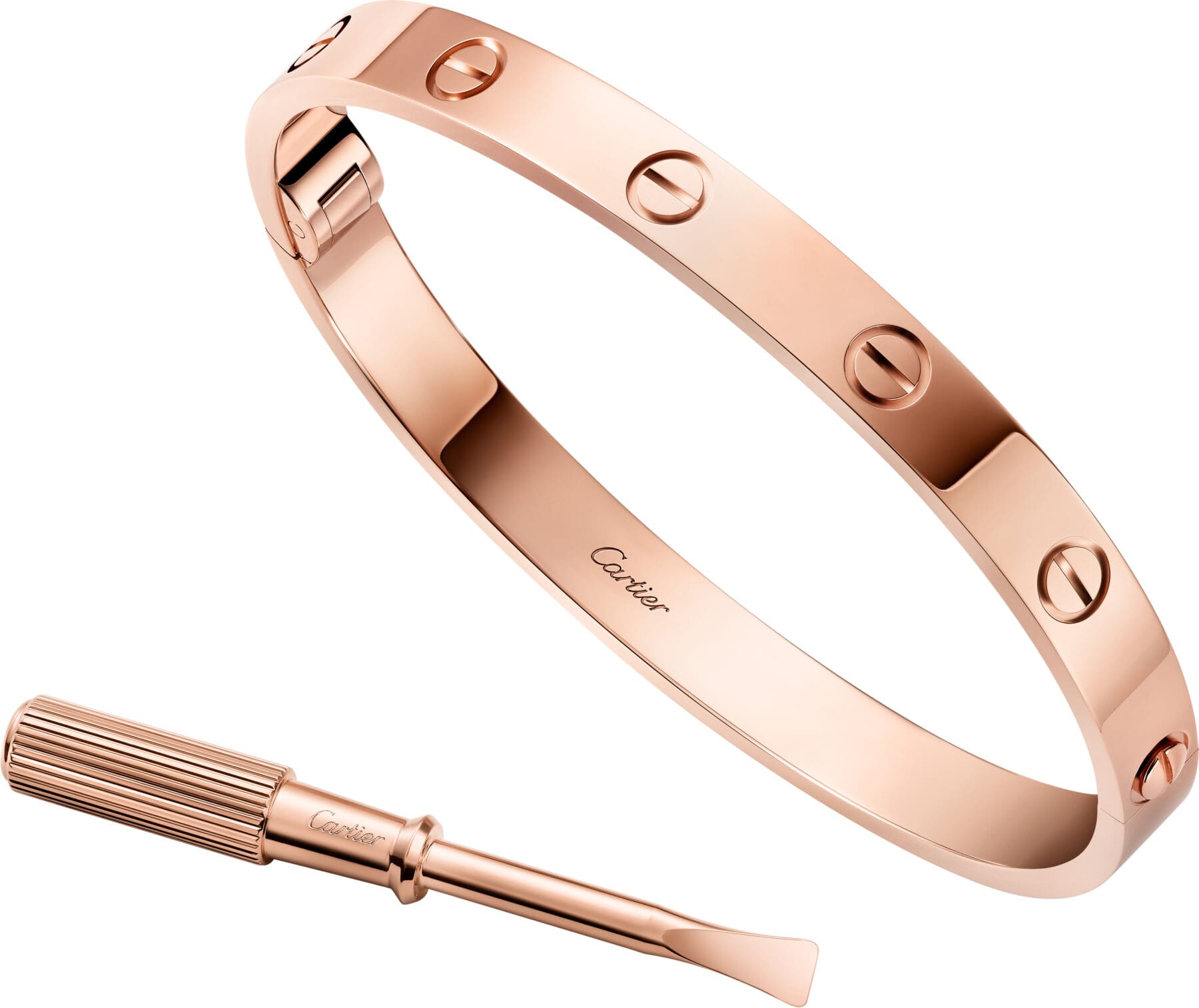 Cartier LOVE系列誕生於1970年代,當時的設計師破格地將常被隱藏的螺絲釘轉為重點的設計元素,象徵愛人之間不可分割的聯繫。今年品牌在愛的季節將這個經典設計進行嶄新詮釋 ,推出適合疊戴或單獨佩戴的全新中型款LOVE手鐲。全新手鐲款式延續了LOVE系列的經典設計,由兩個硬質弧型組成,一端設有鉸鏈,另一端的開關設有螺絲,須透過專用螺絲刀旋緊,以鎖起真摰愛意。