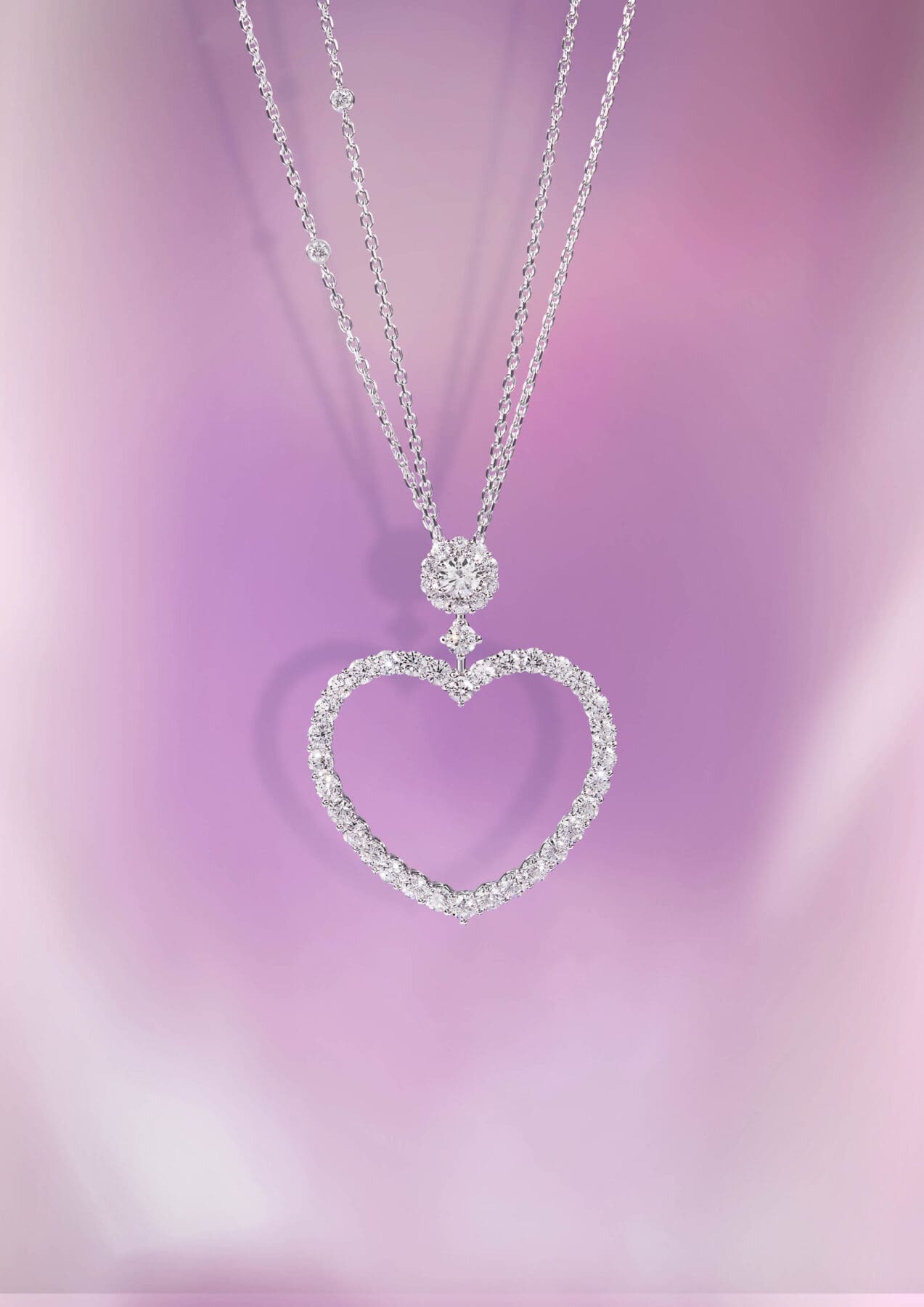 心形圖案是超越語言的愛意象徵,也是Chopard鍾愛的設計元素之一。今年,他們在情人節之際呈獻全新L’Heure du Diamant系列,將心形設計與珠寶工藝完美結合。白金吊墜的心形部分採用了由Karl Scheufele先生發明的「V形爪鑲」工藝,璀璨的鑽石在其上閃耀,彷彿訴說着不變的愛意;耳環作品則是品牌高級珠寶系列經典設計的變奏,大小適中的全新寸讓佩戴更舒適自在,出席隆重場合時可盡顯女性優雅魅力。