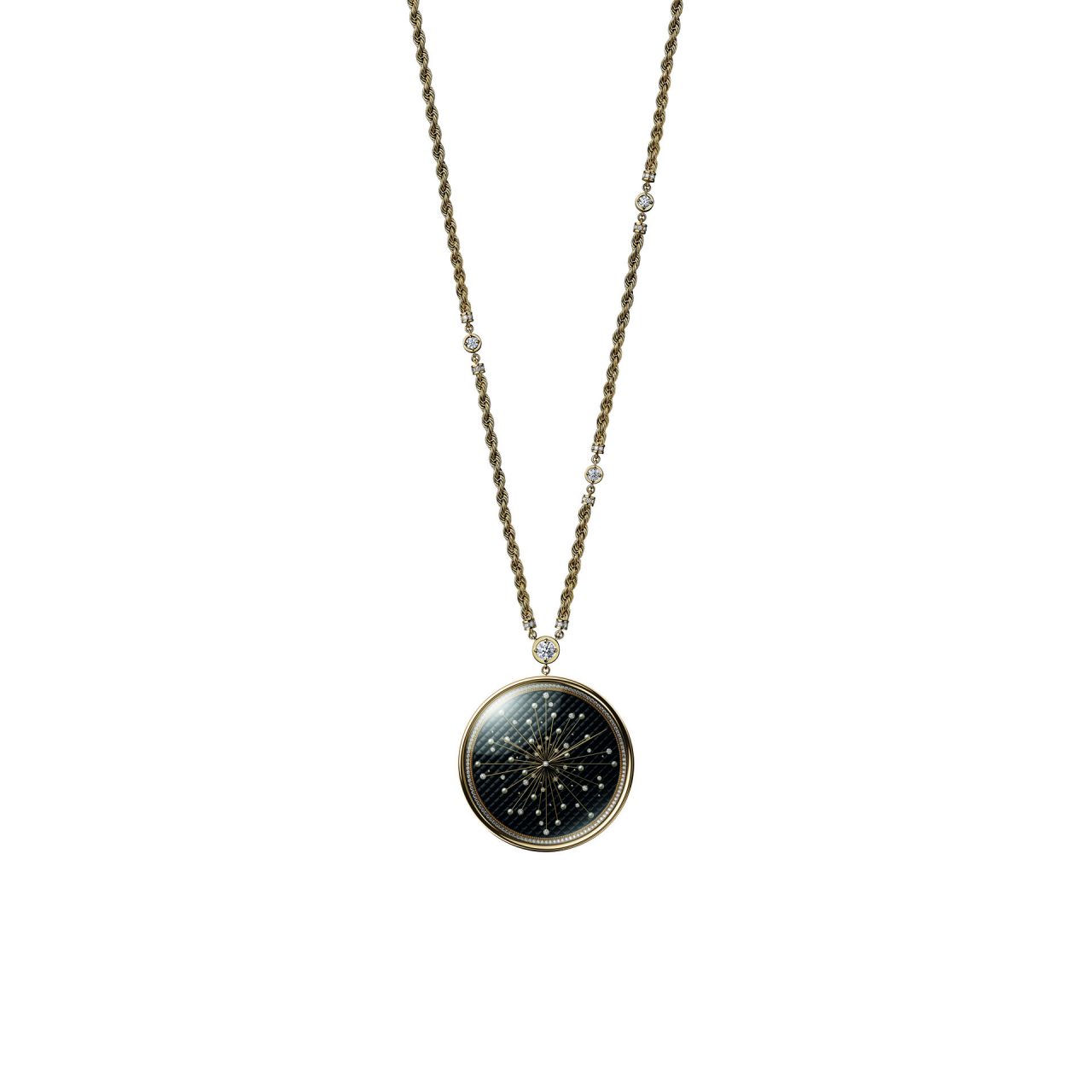 Chanel高訂服半身像的身影除了在J12腕錶上以平面姿態登場外,更幻化成立體吊墜項鏈模樣的秘密腕錶,以18K黃金材質和1,743顆總重達25.83卡的美鑽在你的鎖骨處閃閃發亮。當輕輕拉下高訂服半身像的下擺位置,位於腰間的黑色漆面錶盤便會優雅地呈現,內載的高精準石英機芯隨即透過纖巧的18K黃金指針顯示時間。