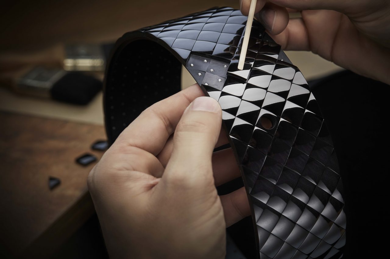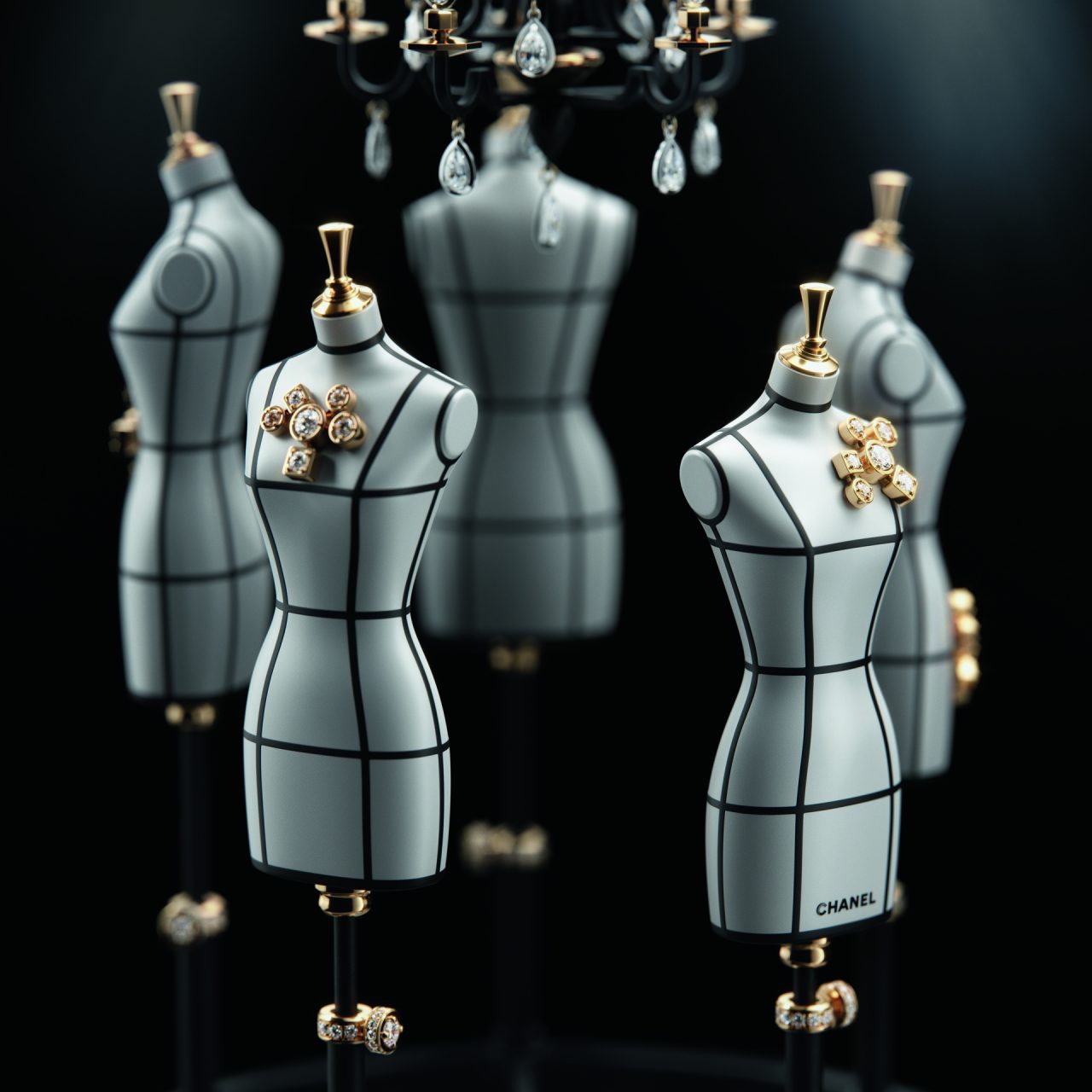 世上只此一座的Chanel Couture workshop音樂座鐘,其靈感源自於Chanel位於康朋街充滿活力氛圍的工作坊,品牌抽取水晶燈上閃爍的鑽石墜飾、座椅上柔軟墊面,以及18K黃金燭台等點綴元素,以Al Bowlly的歌曲《My Woman》的節奏為基調,精心編排的訂製服人檯律動,呈現Chanel女士心愛的旋律,讓人彷彿置身於Gabrielle Chanel大宅內。