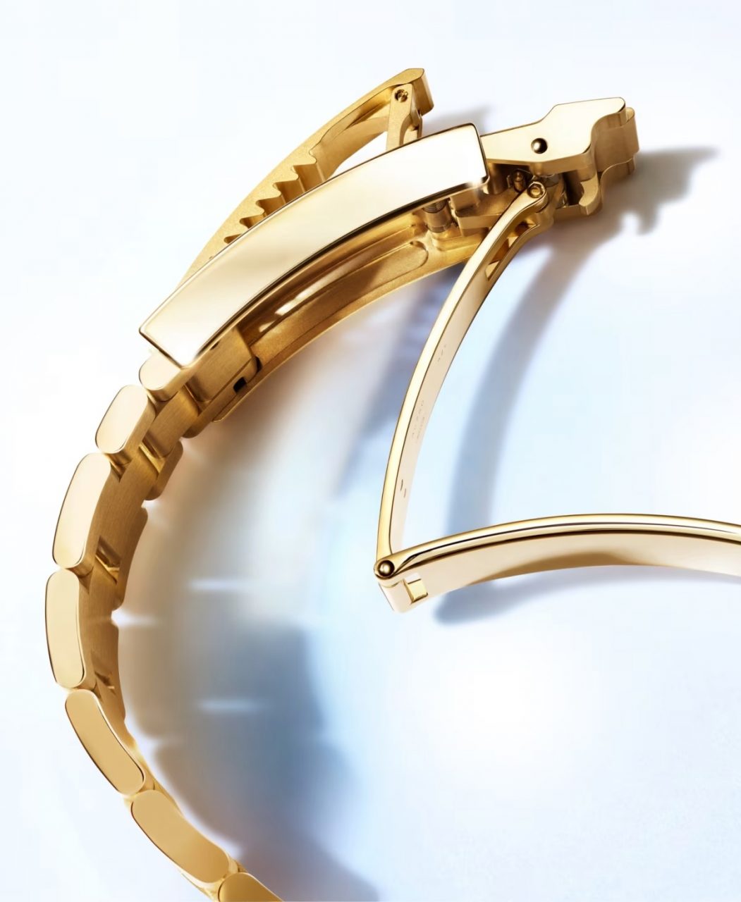 Rolex Deepsea系列腕錶首度運用高品質的18K黃金材質,打造44毫米潛水錶身,並結合多種藍色調,巧妙融合黃金、陶瓷和RLX鈦金屬零件,完美展現品牌在材質和色彩方面的專業知識。壓力環以藍色陶瓷製成,這項創新技術開啟了陶瓷與錶殼結合的新領域。Cerachrom壓力環飾有圓紋磨砂表面,作為Ringlock系統的一部分,使腕錶能夠承受高達3,900米(12,800呎)的極大壓力。錶盤、刻度圈和壓力環呈現出一致的色調,與18K黃金錶殼和蠔式(Oyster)錶帶相得益彰。